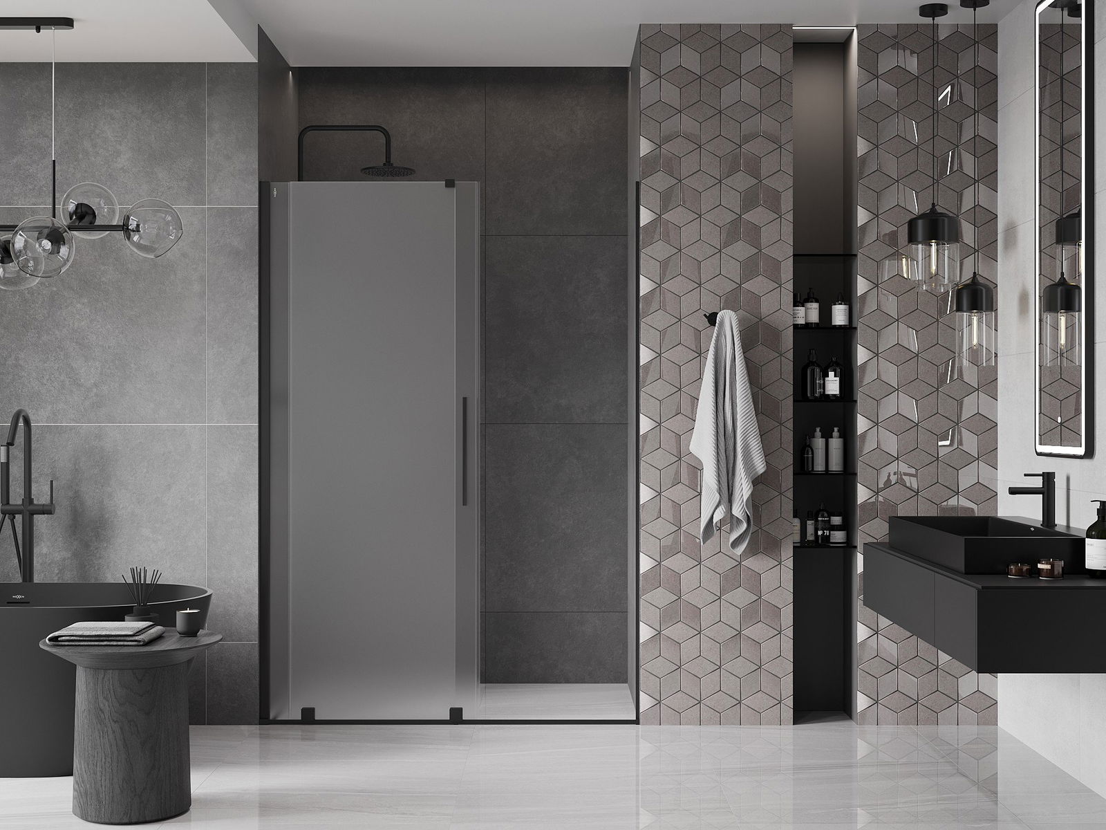 Mexen Velar sliding shower door 150 cm, frosted, black - 871-150-000-31-70