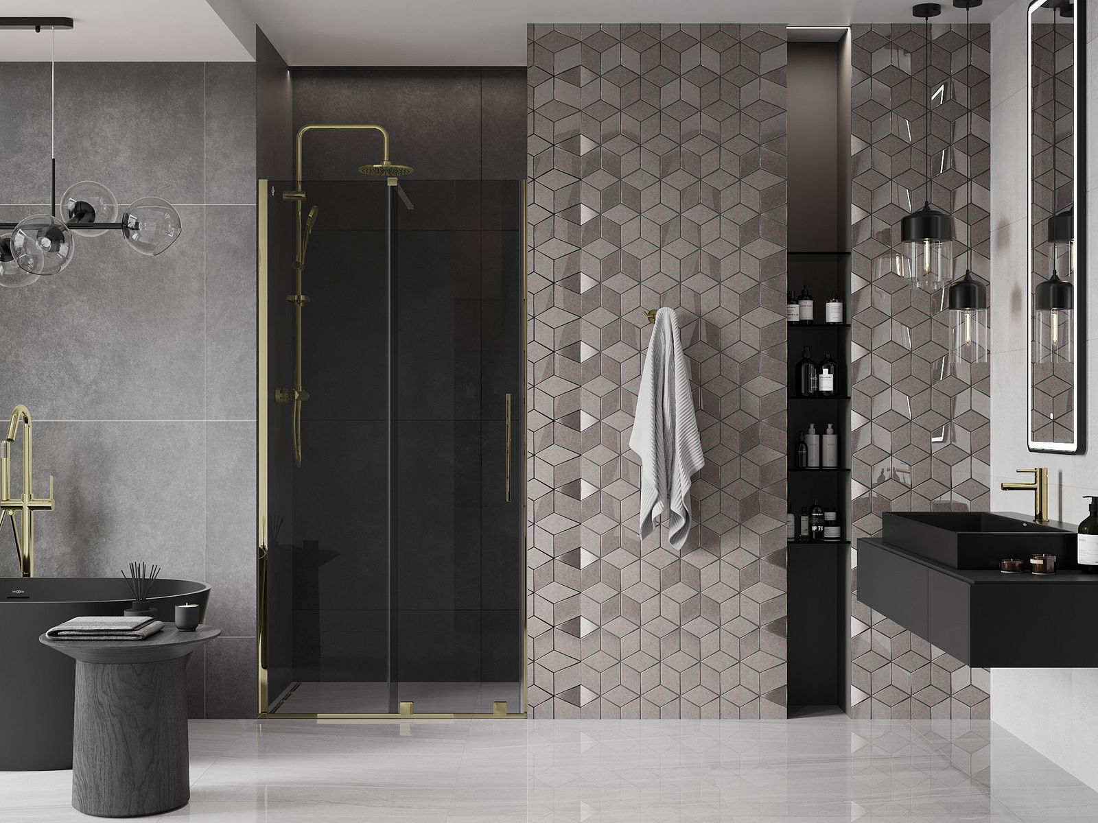 Mexen Velar sliding shower door 90 cm, graphite, gold - 871-090-000-41-50
