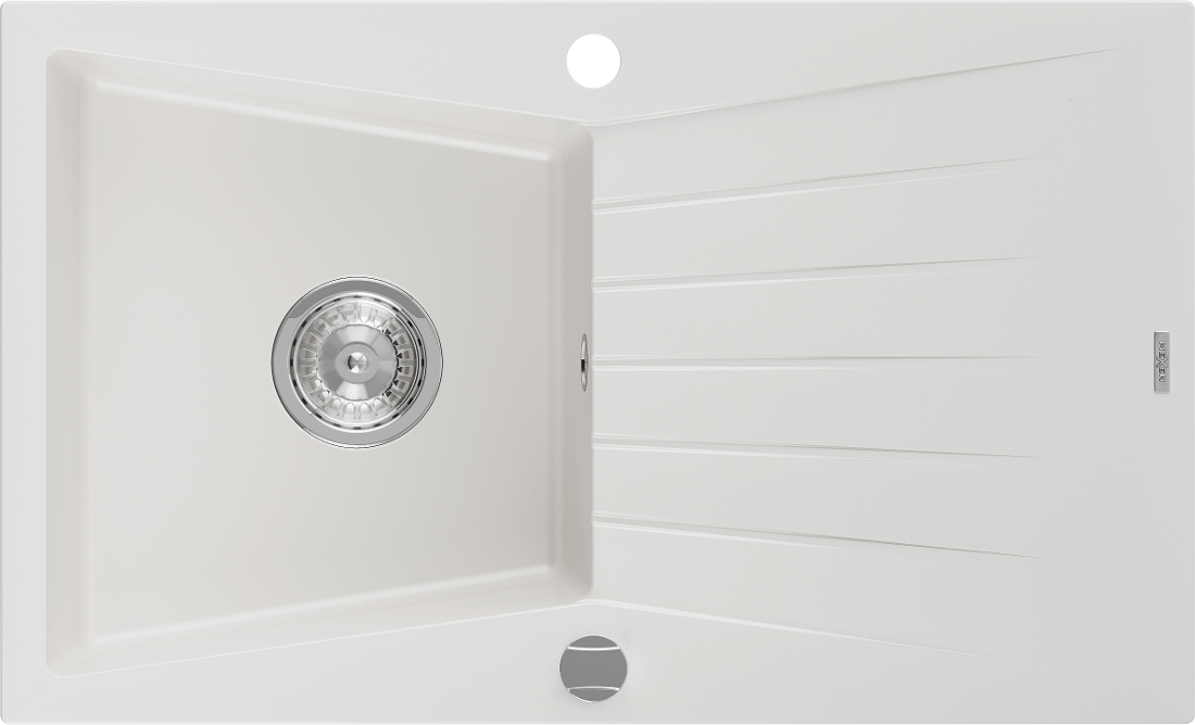 Mexen Cesar granite sink 1-bowl with drainer 775 x 470 mm, white, chrome siphon - 6514771010-20