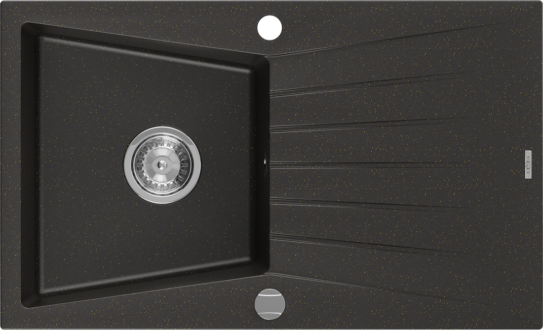 Mexen Cesar granite sink 1-bowl with drainer 775 x 470 mm, black/golden metallic, chrome siphon - 6514771010-75