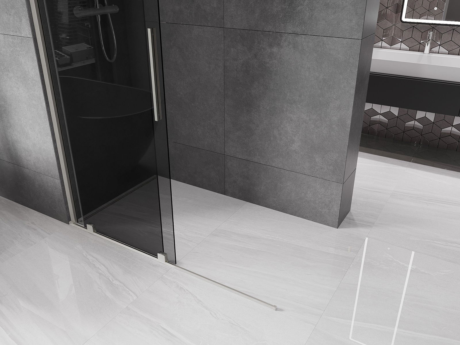 Mexen Velar sliding shower wall Walk-in 130 x 200 cm, graphite 8 mm, brushed nickel - 871-130-000-43-97