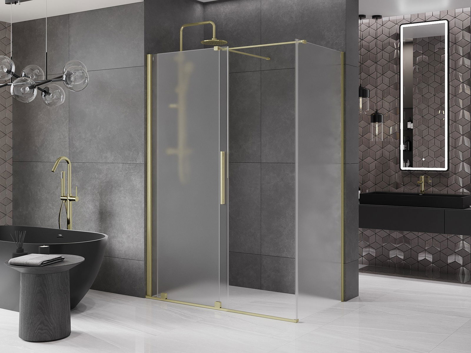 Mexen Velar Sliding Shower Enclosure 130 x 70 cm, Frosted, Brushed Gold - 871-130-070-31-55