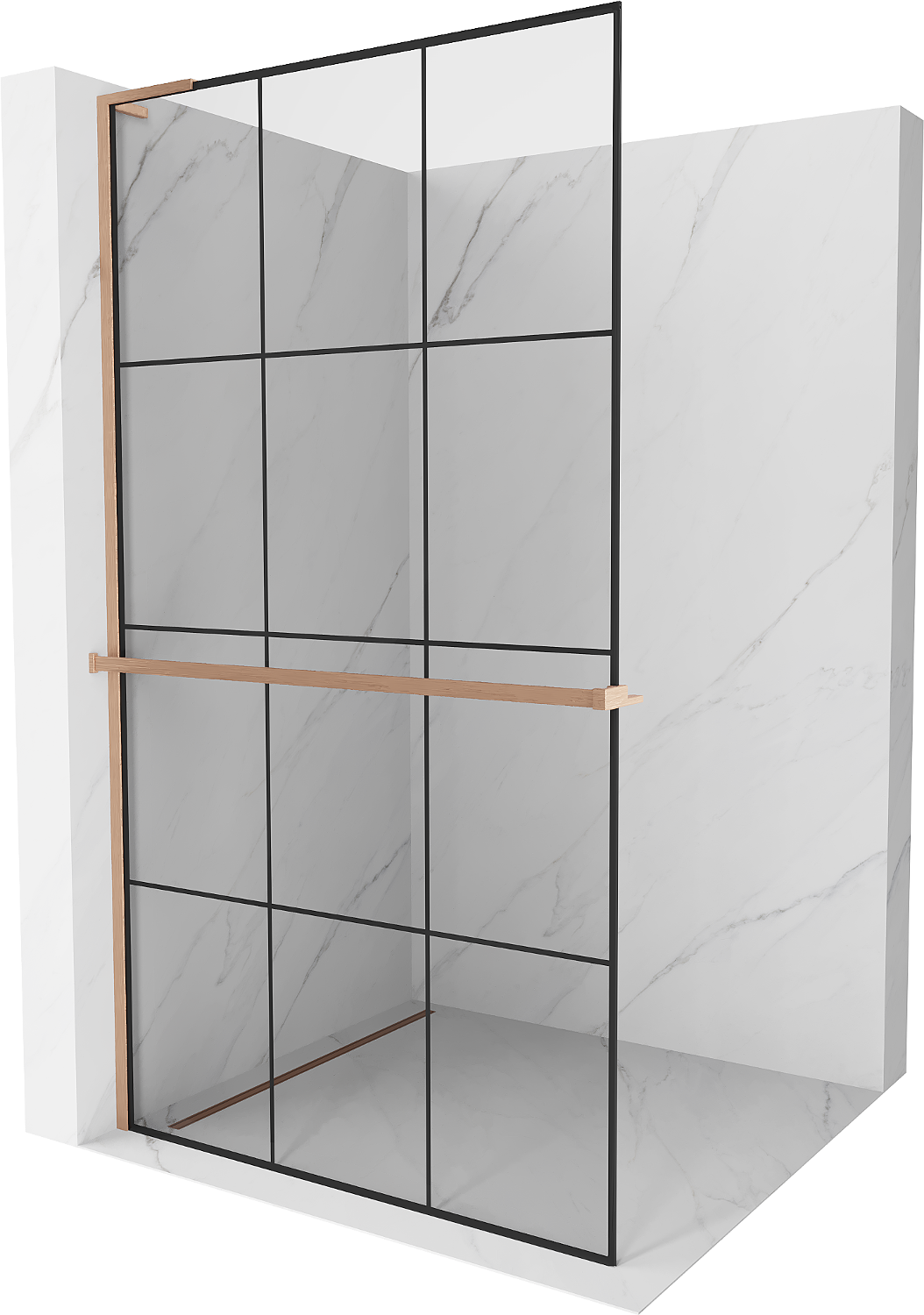 Mexen Kioto+ L shower screen with shelf Walk-in 110 x 200 cm, black grid, brushed copper - 800-110-123-65-77