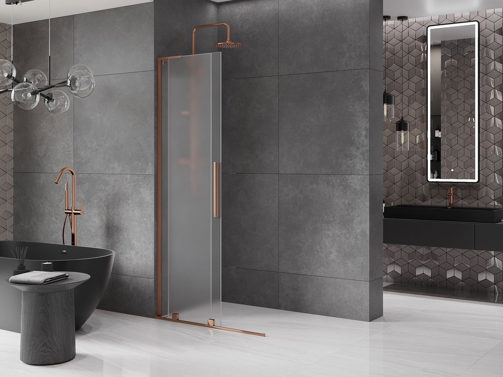 Mexen Velar L Sliding Shower Screen Walk-in 90 x 200 cm, Frosted 8 mm, Rose Gold - 871-090-003-33-60
