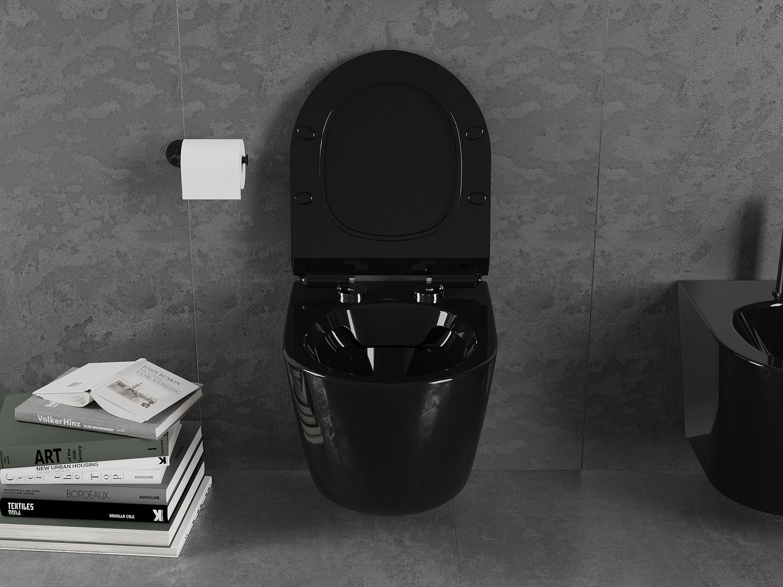 Mexen Lena Rimless WC Bowl with Slim Soft-Close Seat, Duroplast, Black Gloss - 30224070