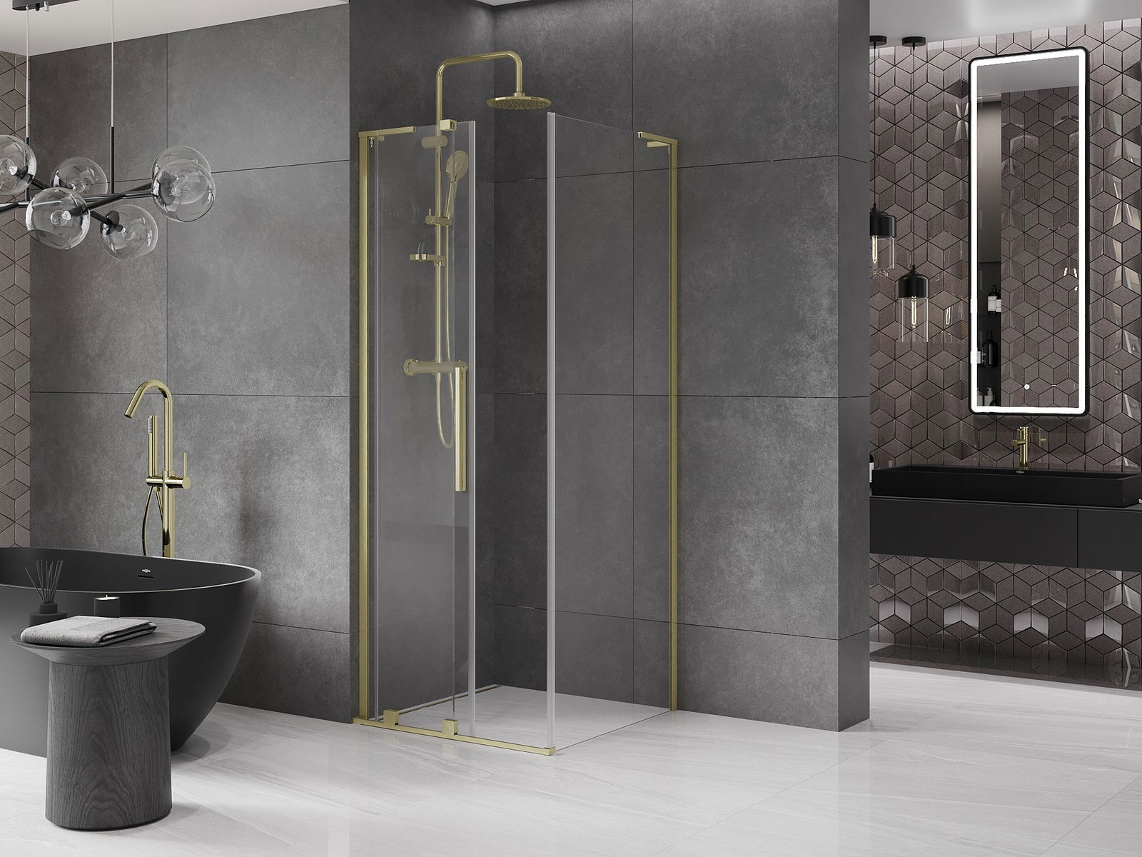 Mexen Velar L sliding shower cabin 100 x 100 cm, transparent, brushed gold - 871-100-100-03-55