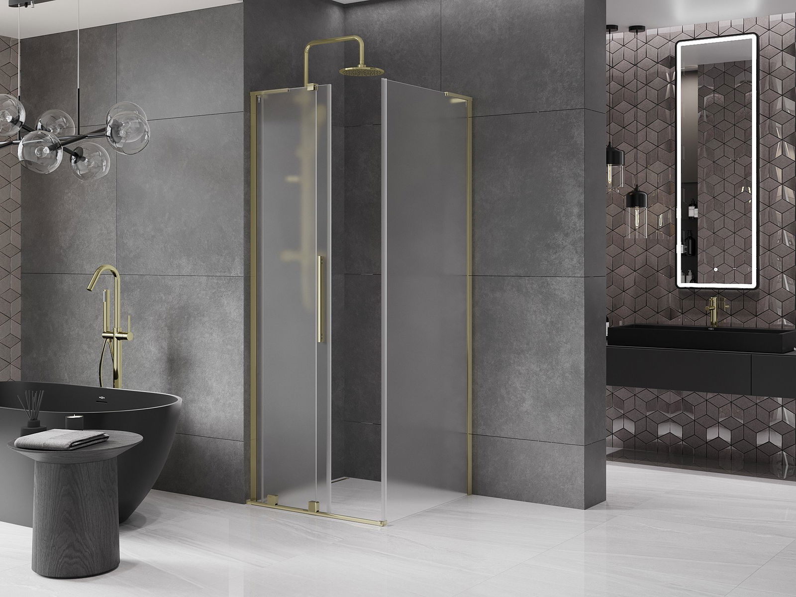 Mexen Velar L sliding shower enclosure 90 x 90 cm, frosted, gold - 871-090-090-33-50