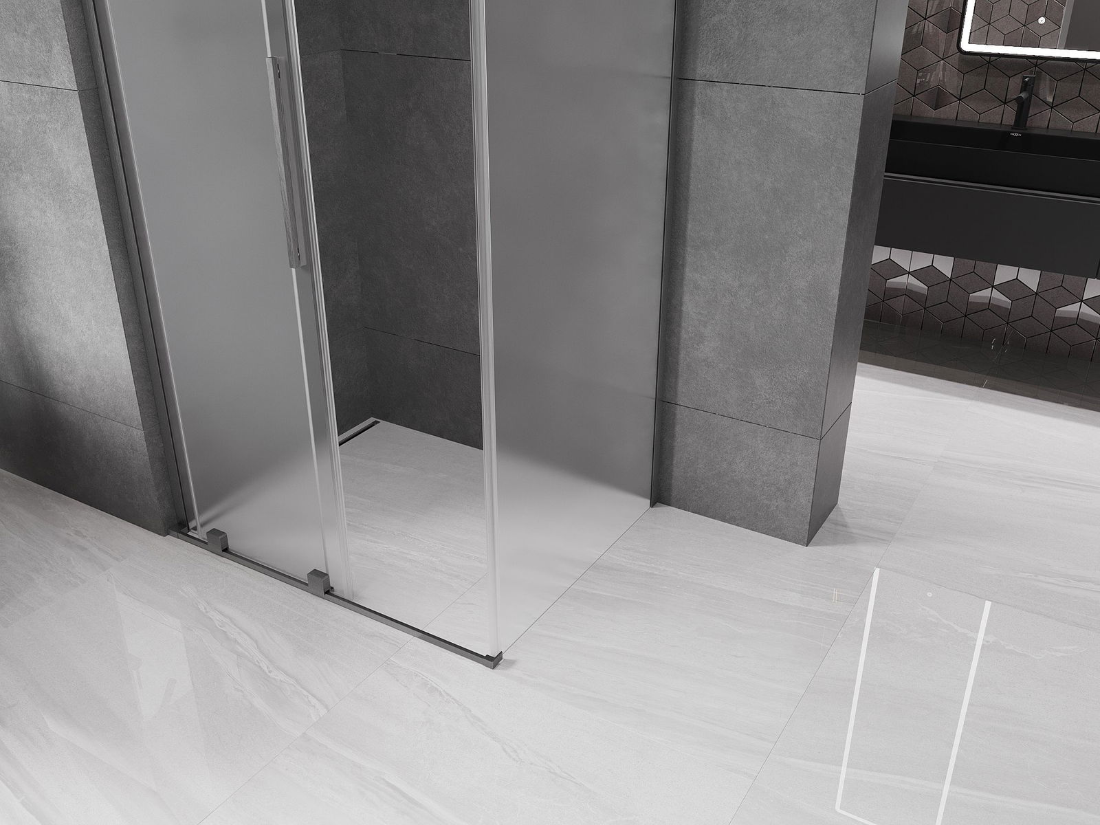 Mexen Velar L sliding shower cabin 90 x 100 cm, frost, brushed gun gray - 871-090-100-33-66