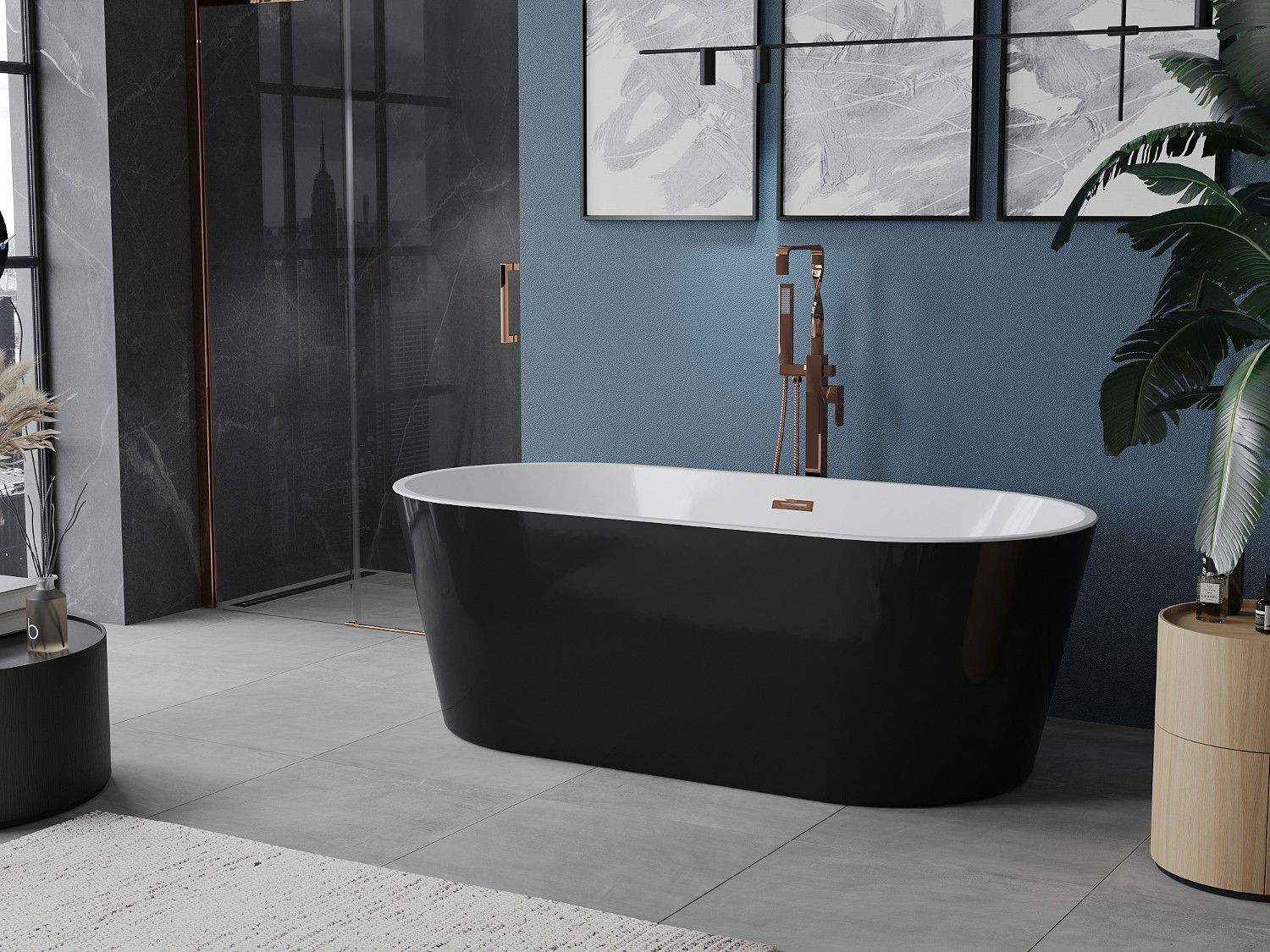 Mexen Luna freestanding bath 180 x 80 cm, white/black, overflow rose gold - 52031808075-60