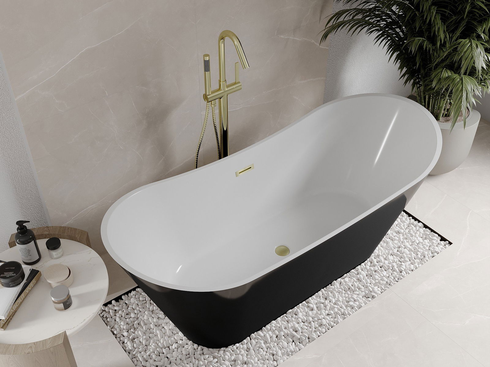 Mexen Celia freestanding bathtub 170 x 75 cm, white/black, overflow brushed gold - 52331707575-55