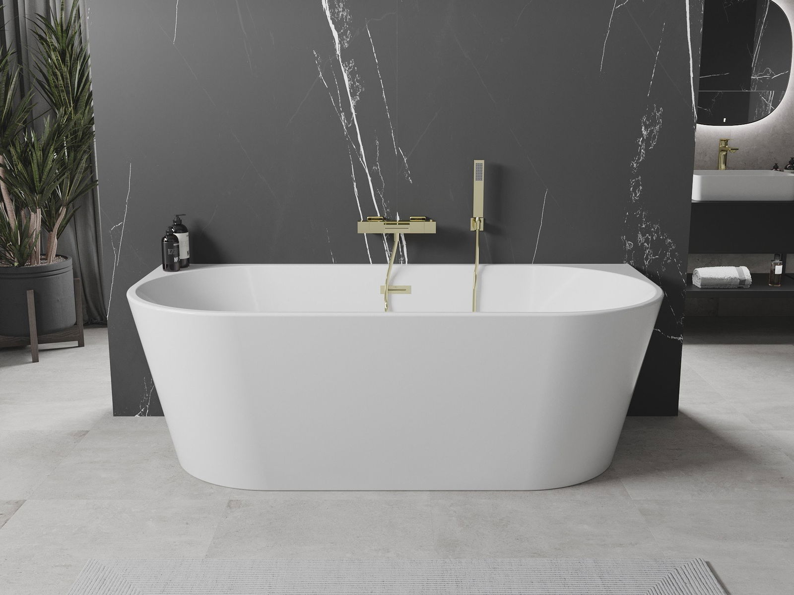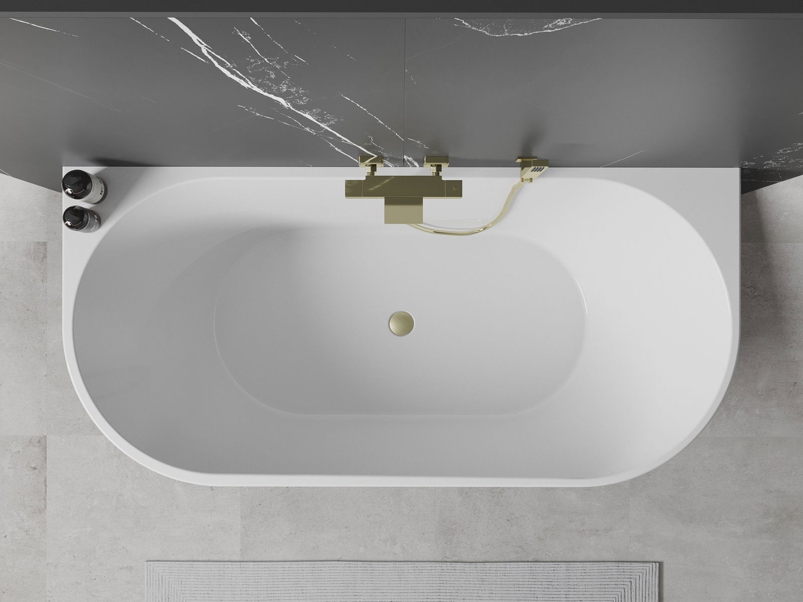 Mexen Oval Freestanding Wall Bathtub 150 x 75 cm, White, Brushed Gold Overflow - 52671507500-55