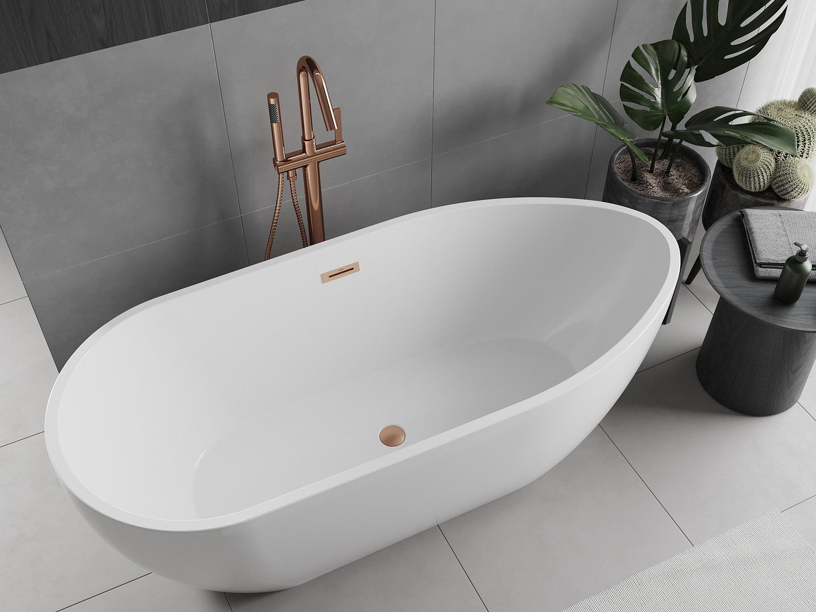 Mexen Eos freestanding bath 150 x 75 cm, white, brushed copper overflow - 52471507500-65