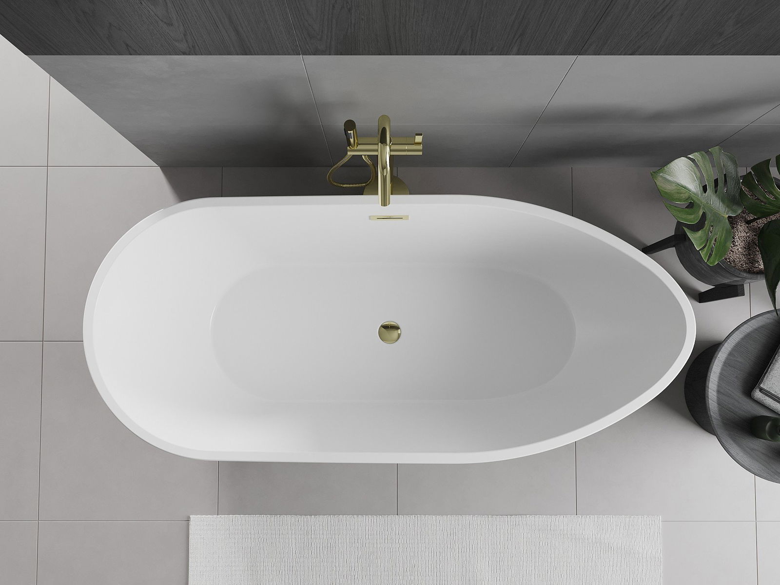 Mexen Eos freestanding bath 150 x 75 cm, white/black, gold overflow - 52471507575-50