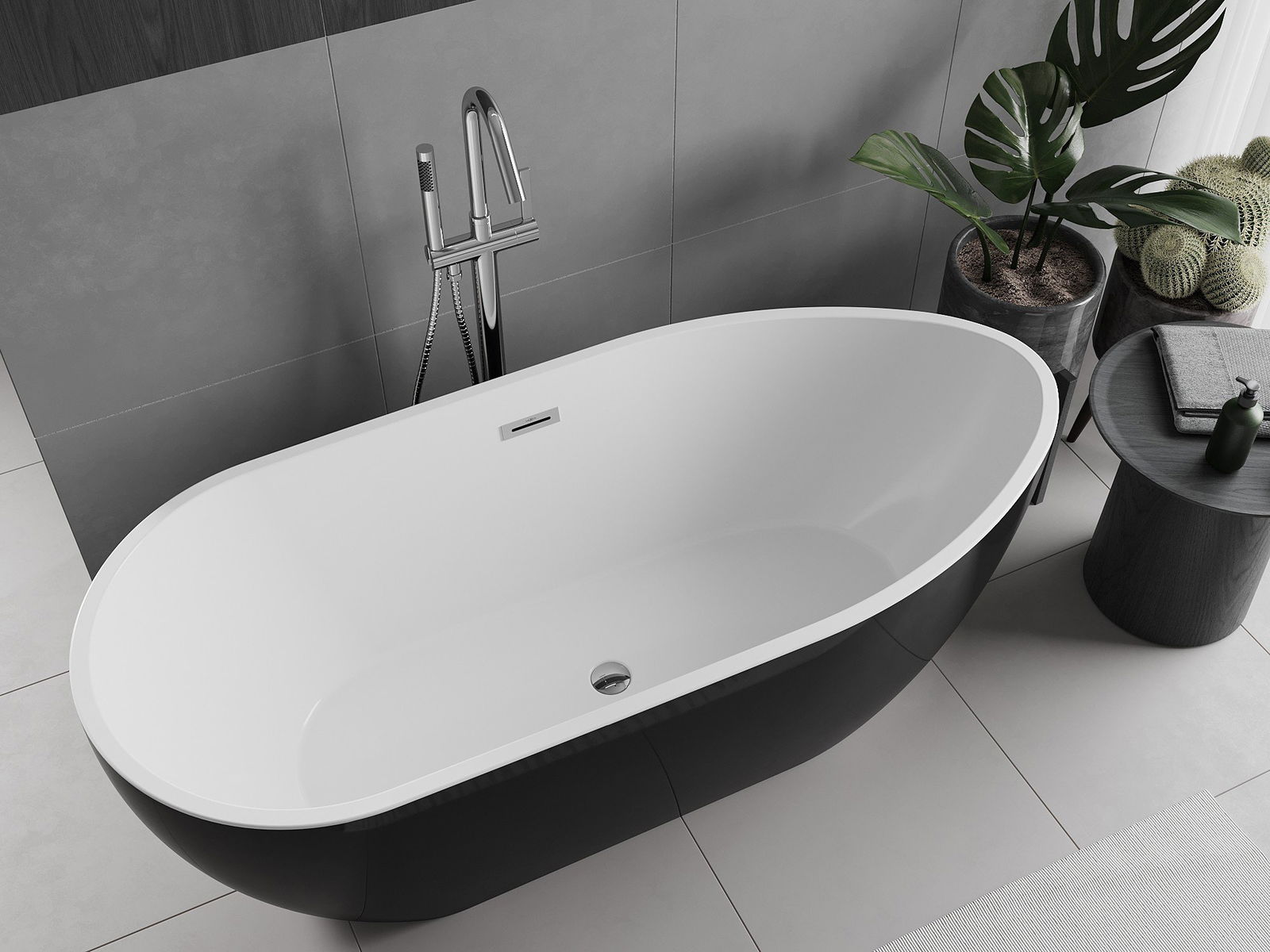 The Mexen Eos freestanding bath measuring 170 x 75 cm is an ideal choice for modern bathrooms. Made from high-quality sanitary acrylic, it combines the elegance of white and black with a chrome finish. Its oval shape and adequate depth ensure a comfortable bathing experience. The bath features an overflow opening and central drain, enhancing its functionality. Additionally, resistance to dulling and UV radiation ensures the product's long-lasting shine.