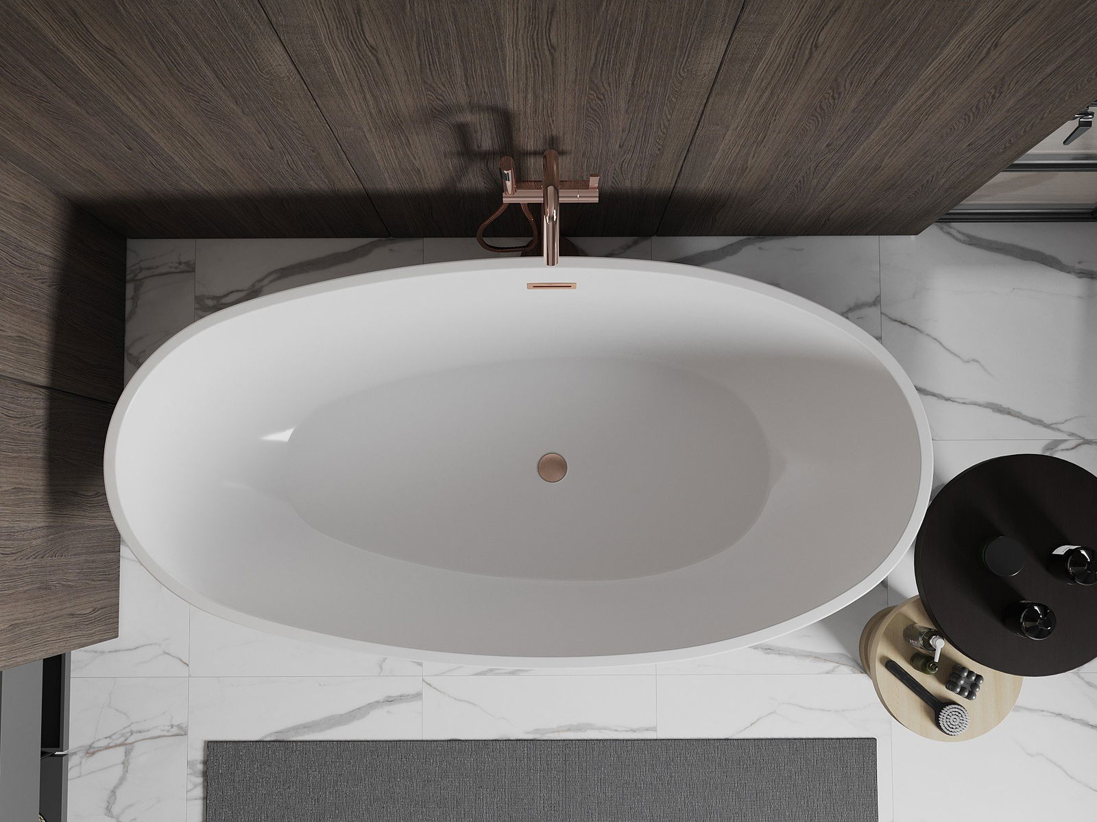 Mexen Bilbao freestanding bath 180 x 90 cm, white/black, brushed copper overflow - 51311809075-65
