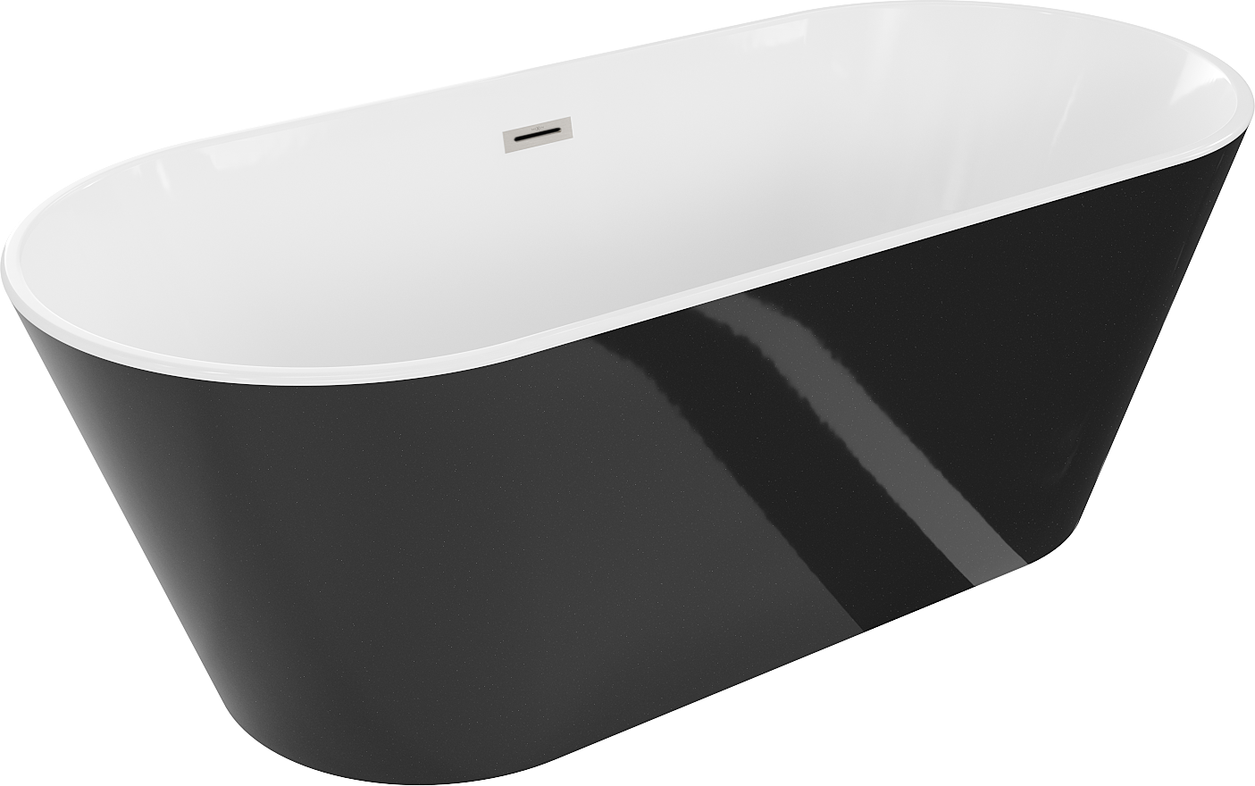 Mexen Flavia freestanding bath 150 x 75 cm, white/black, brushed nickel overflow - 54031507575-97