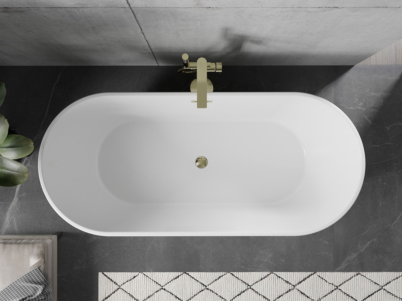Mexen Flavia freestanding bath 160 x 75 cm, white, gold overflow - 54031608000-50