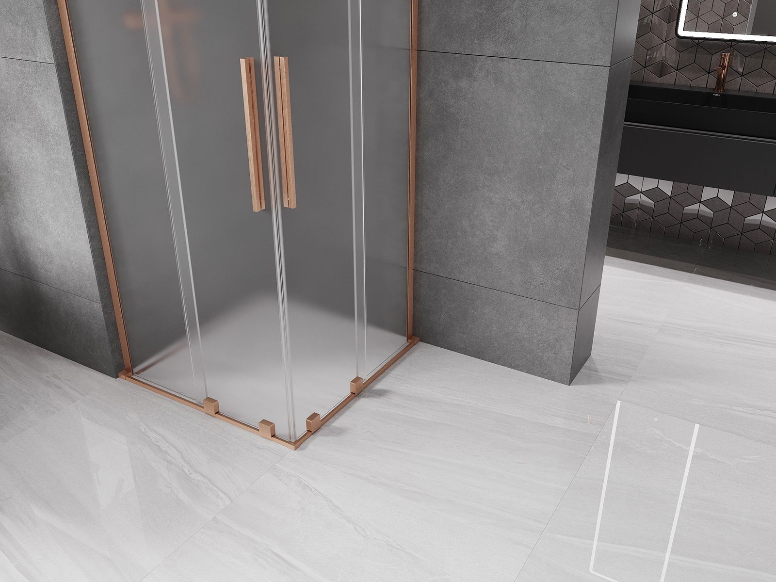 Mexen Velar L Duo Sliding Shower Enclosure 90 x 90 cm, Frosted, Brushed Copper - 871-090-090-02-33-65