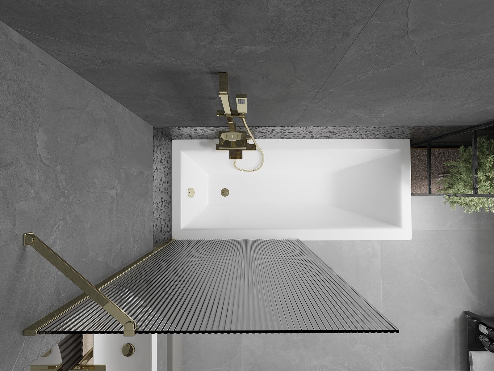 Mexen Next 1-wing Bath Screen 90 x 150 cm, Striped, Gold - 895-090-000-00-09-50