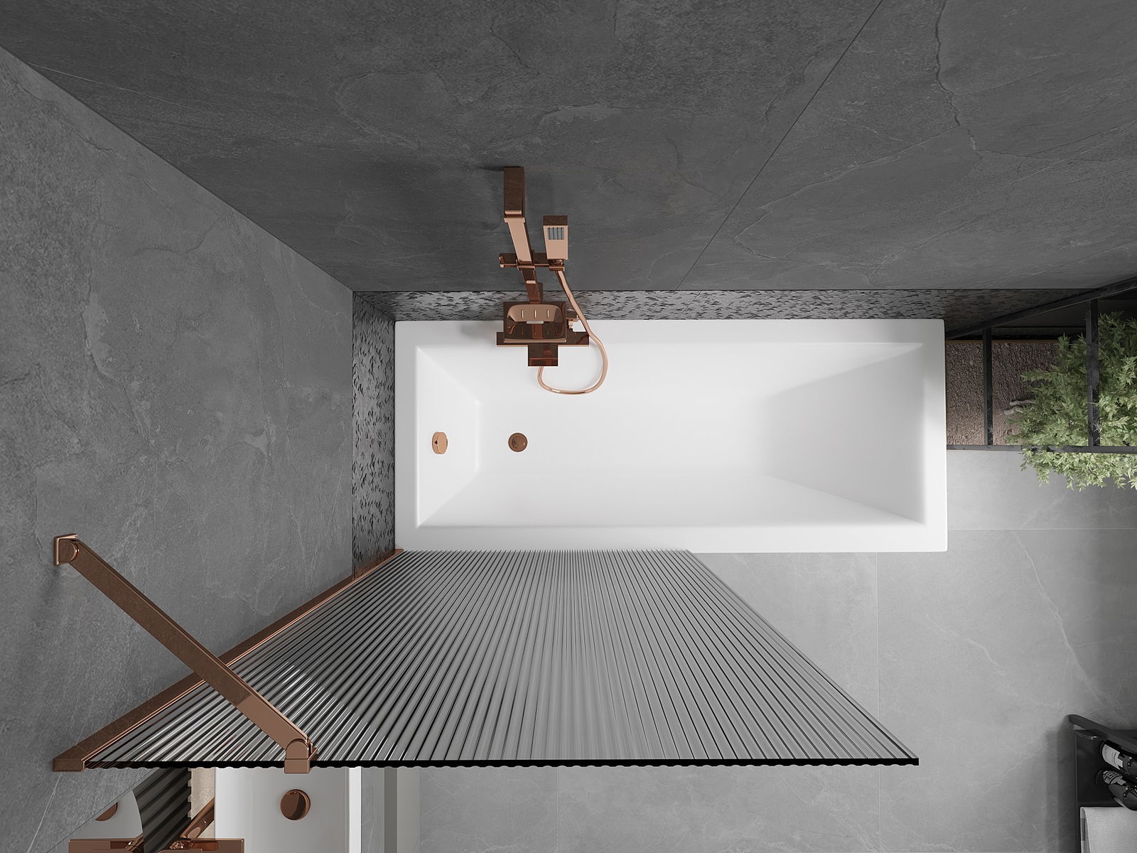 Mexen Next 1-wing Bath Screen 90 x 150 cm, Stripes, Rose Gold - 895-090-000-00-09-60