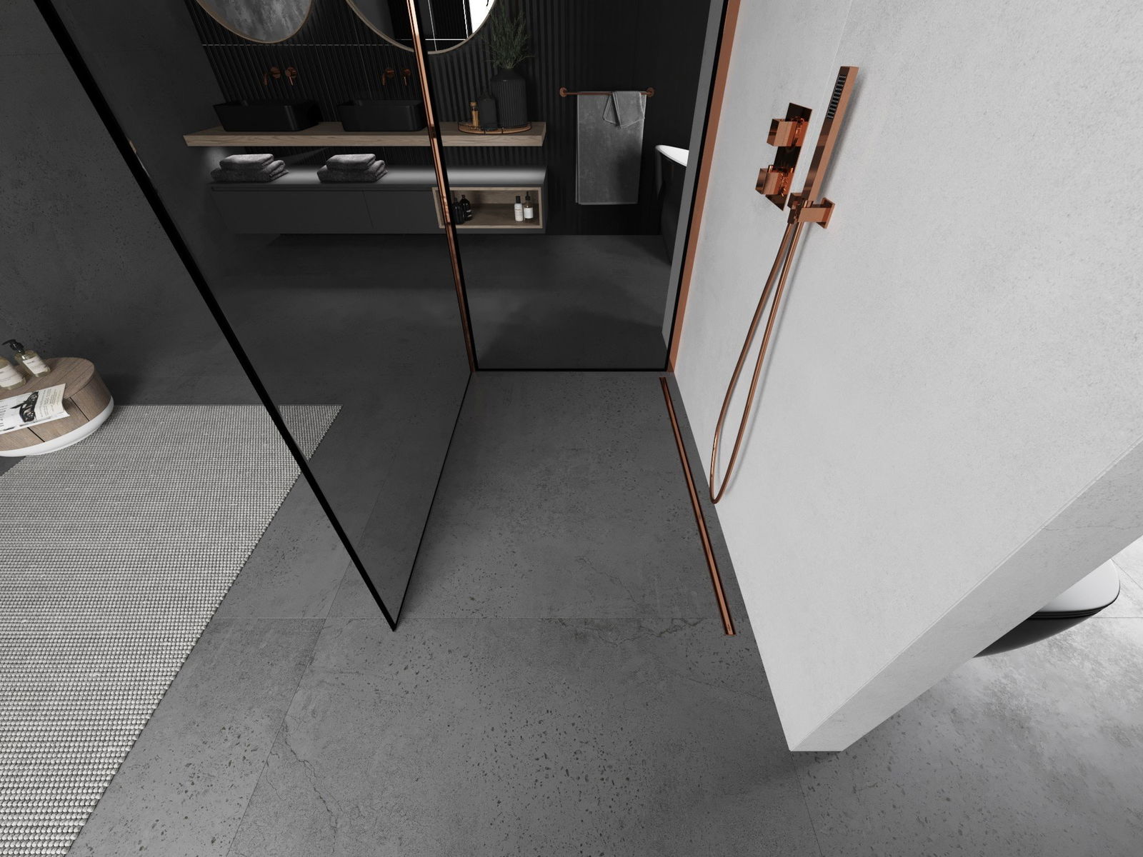 Mexen Kioto Walk-in Shower Wall 140 x 90 cm, Black Frame, Rose Gold - 800-140-212-60-70-090