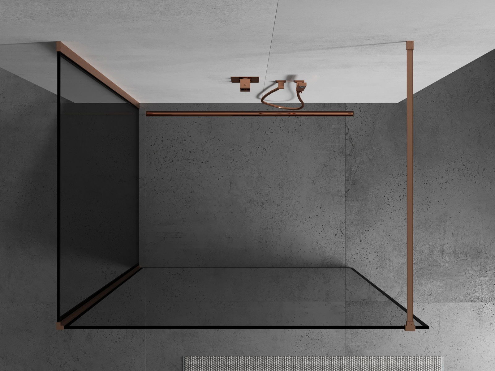 Mexen Kioto Walk-in Shower Screen 120 x 120 cm, Black Frame, Brushed Copper - 800-120-212-65-70-120