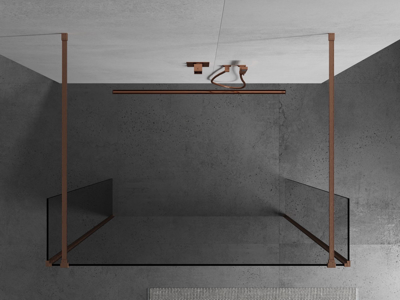 Mexen Kioto Freestanding Shower Screen 110 x 30 x 30 cm, Transparent, Brushed Copper - 800-110-030-222-65-00-030