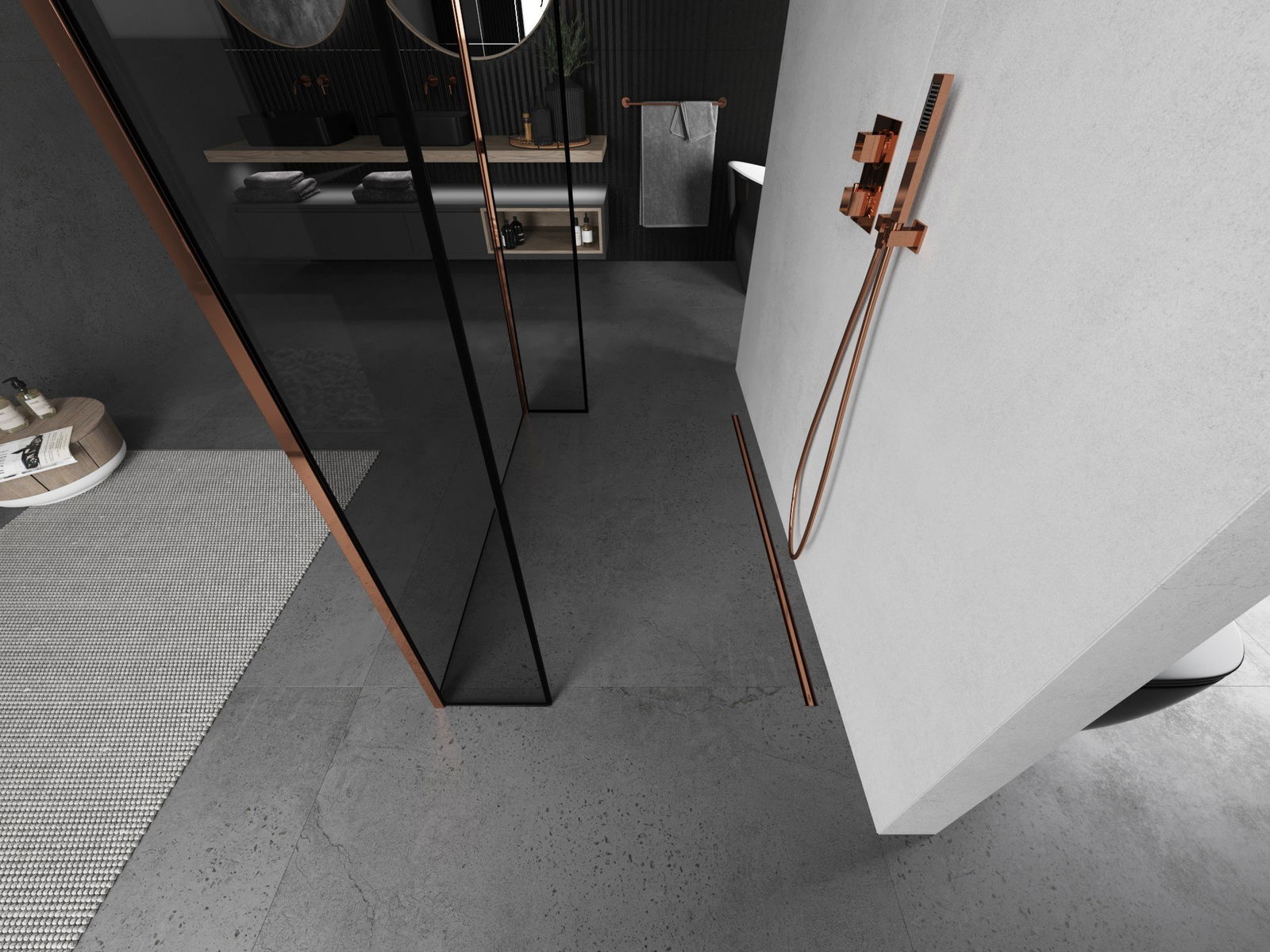 Mexen Kioto freestanding shower wall 100 x 30 x 30 cm, black frame, pink gold - 800-100-030-222-60-70-030