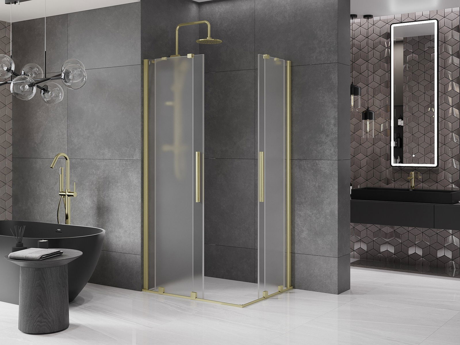 Mexen Velar Duo Sliding Shower Enclosure 90 x 80 cm, Frosted, Brushed Gold - 871-090-080-32-55