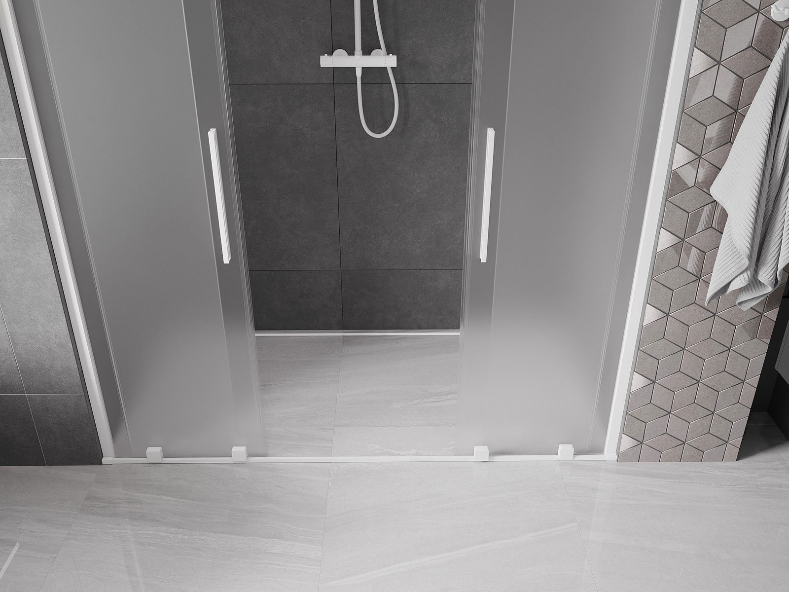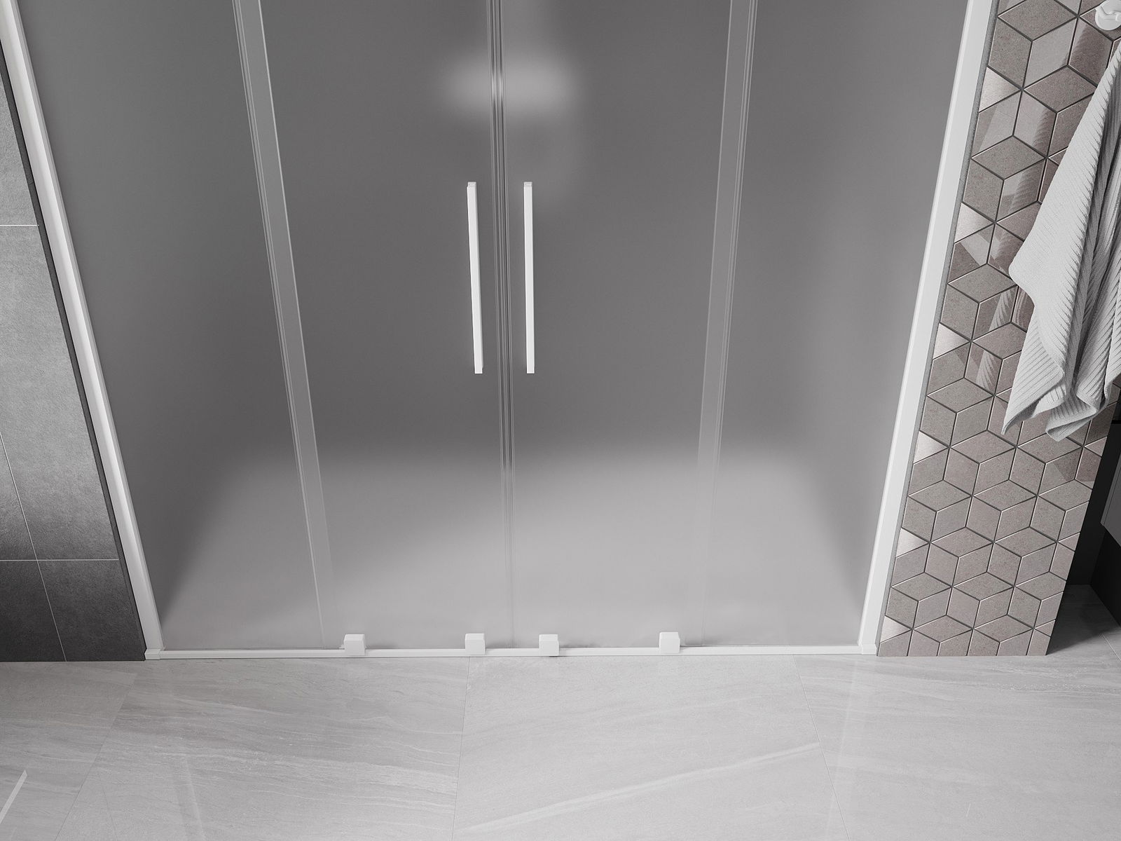 Mexen Velar Duo sliding shower doors 200 cm, frosted, white - 871-200-000-32-20