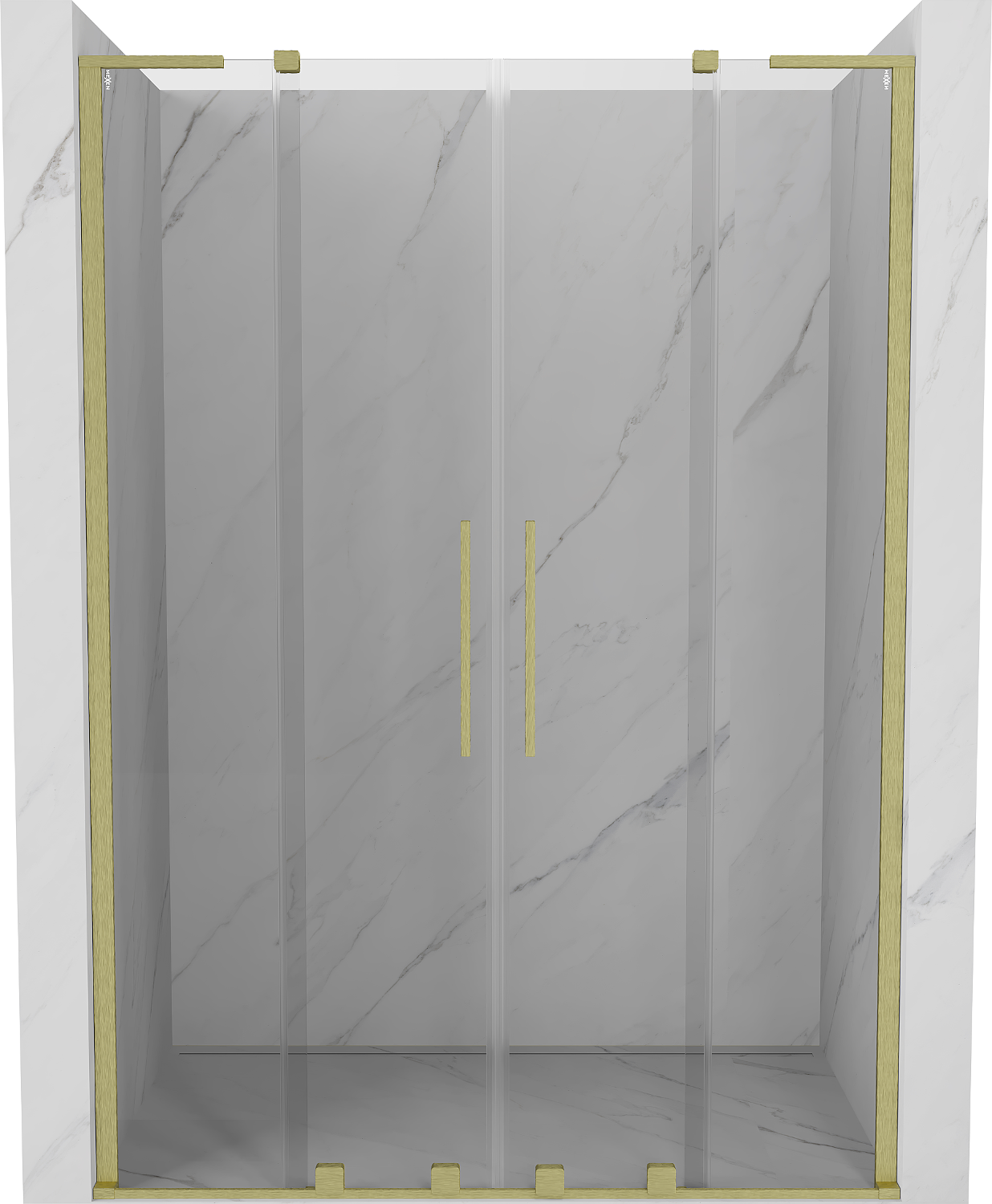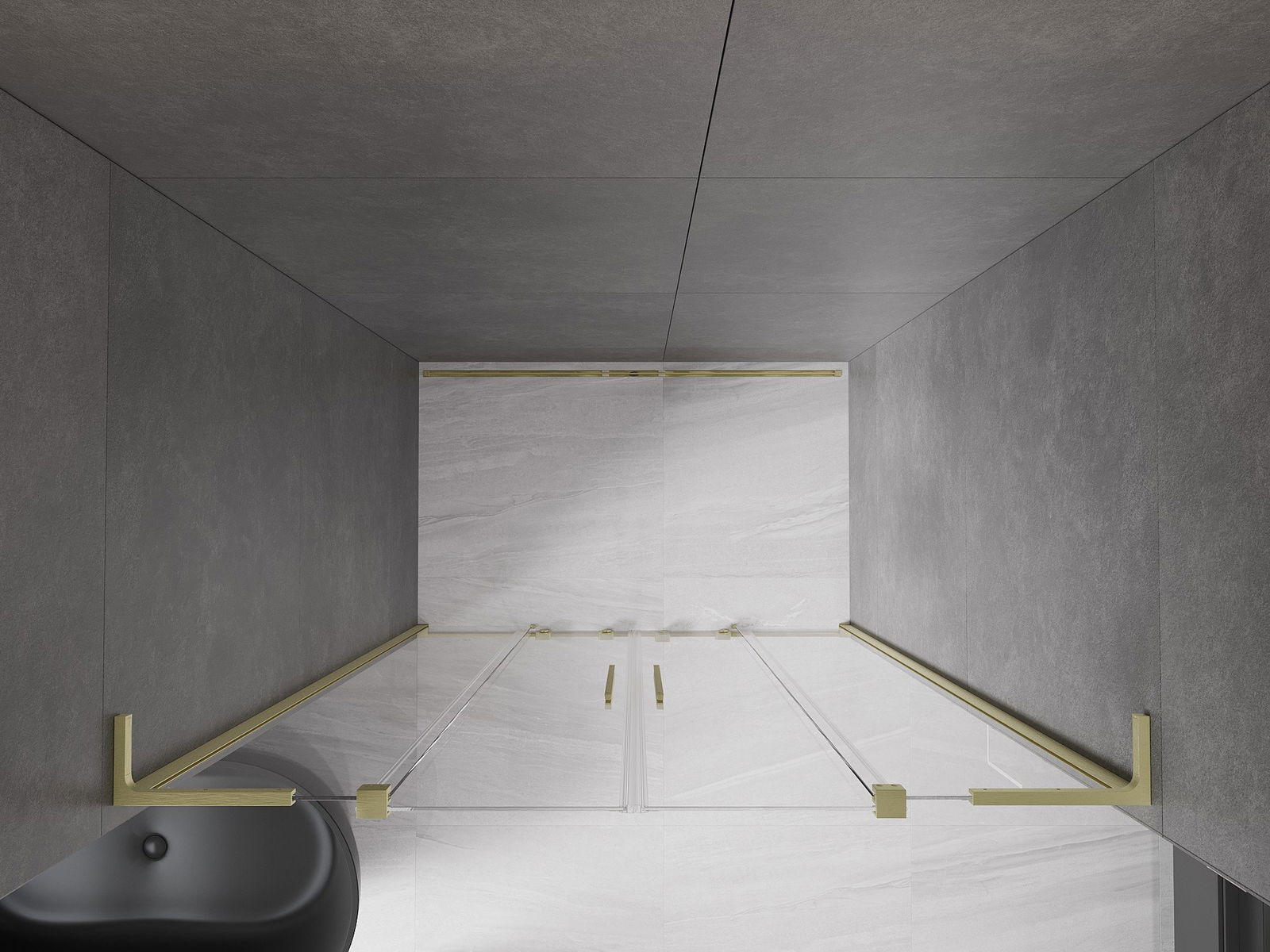 Mexen Velar L Duo 140 cm Sliding Shower Door, Transparent, Brushed Gold - 871-140-003-02-55