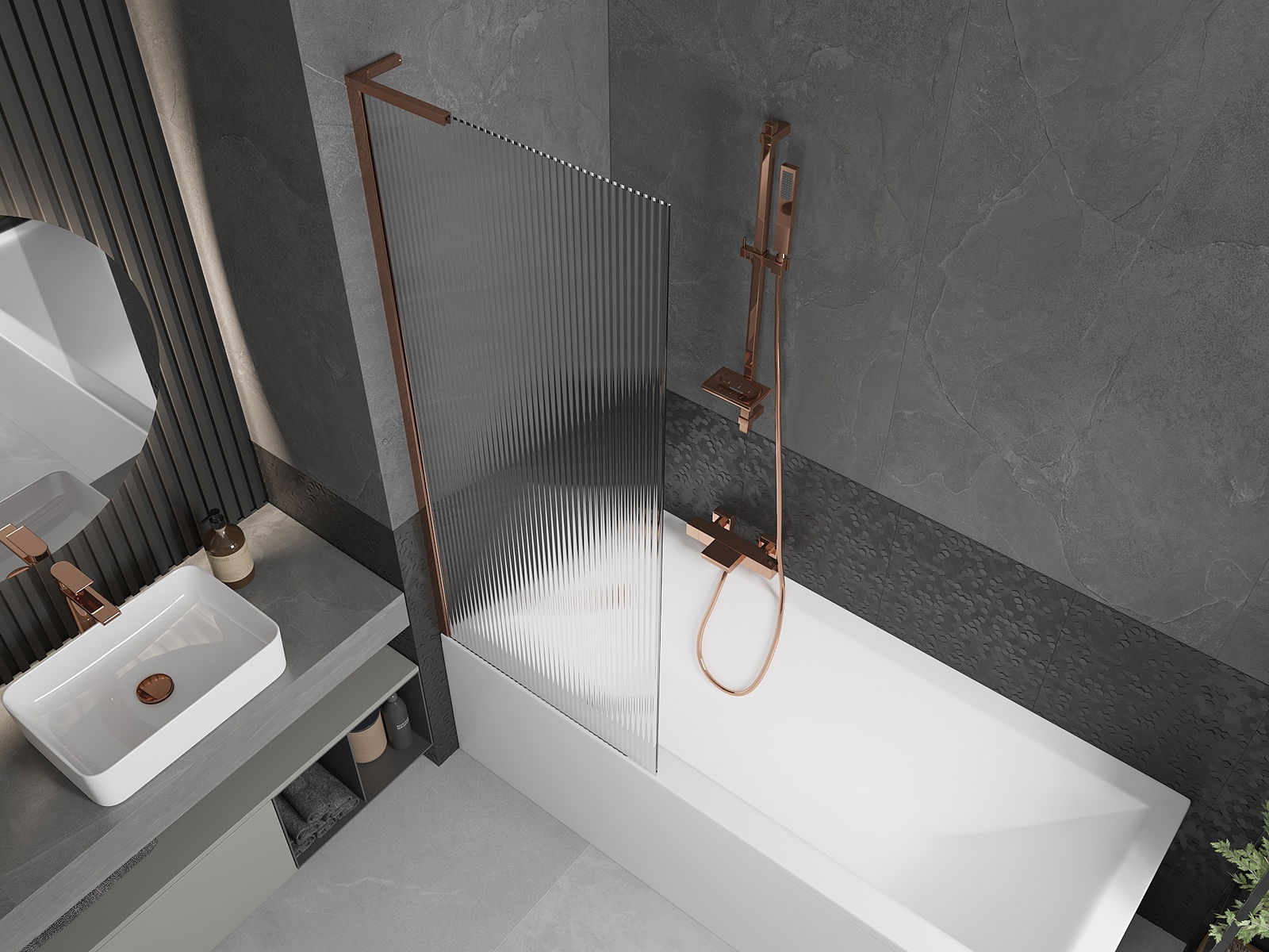 Mexen Next L 1-panel bath screen 70 x 150 cm, stripes, rose gold - 895-070-000-03-09-60