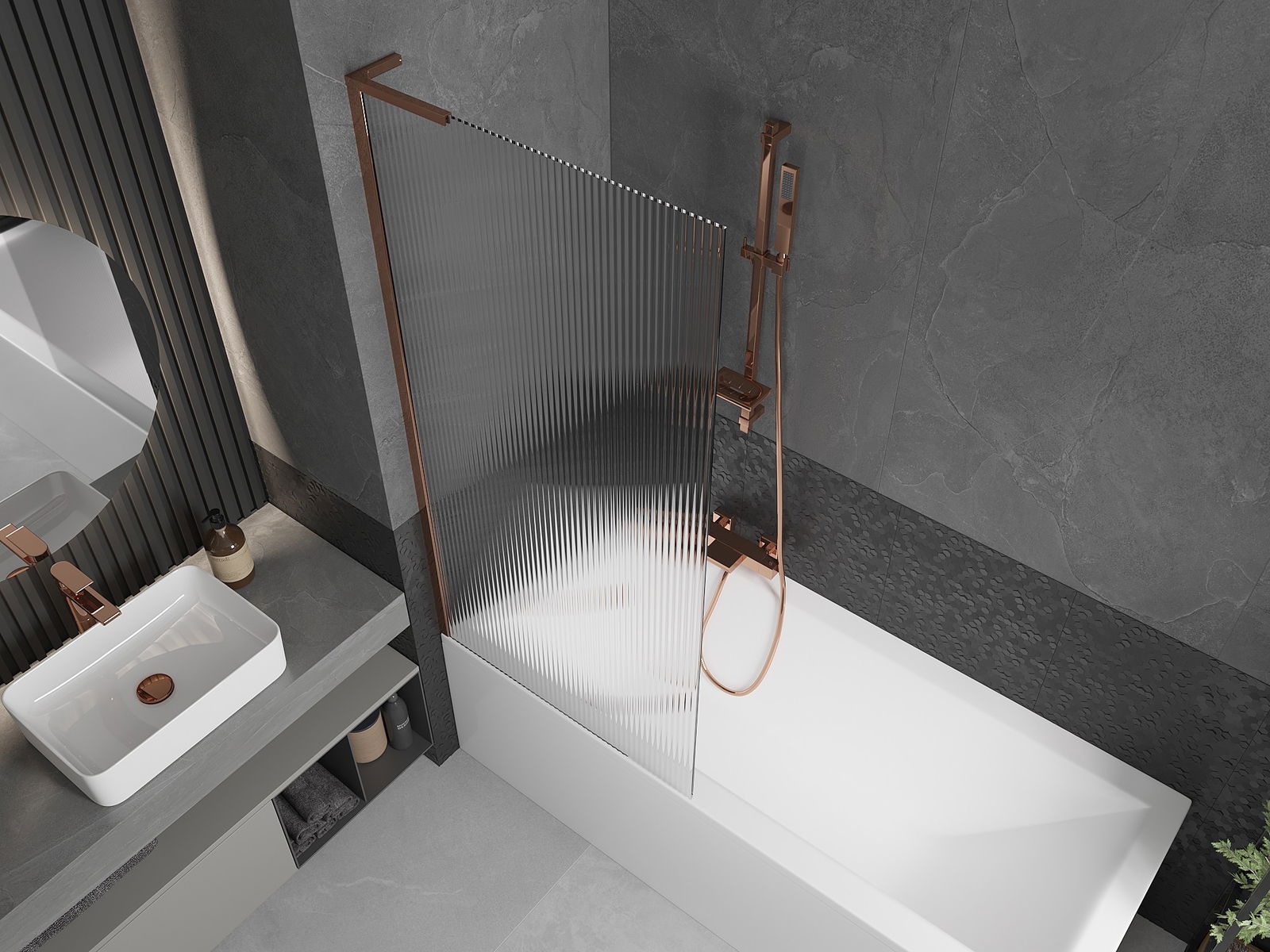Mexen Next L bathtub screen 1-wing 80 x 150 cm, stripes, rose gold - 895-080-000-03-09-60