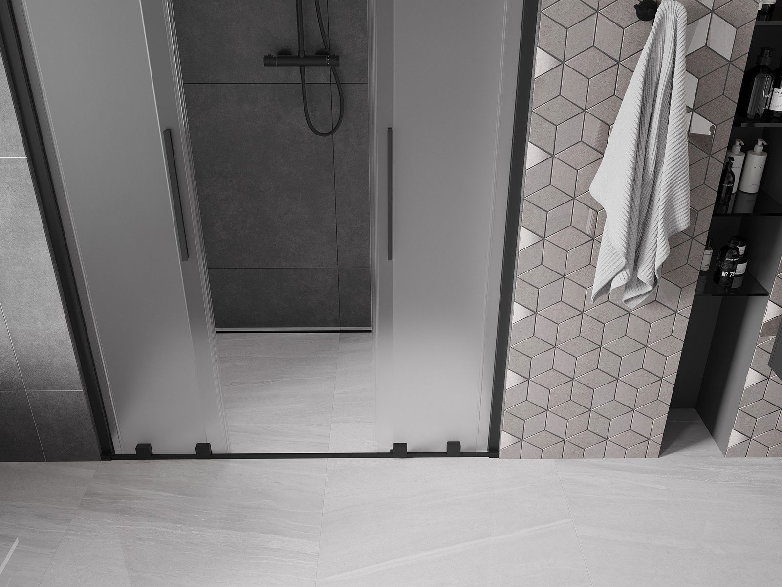 Mexen Velar L Duo sliding shower doors 160 cm, frost, black - 871-160-003-32-70