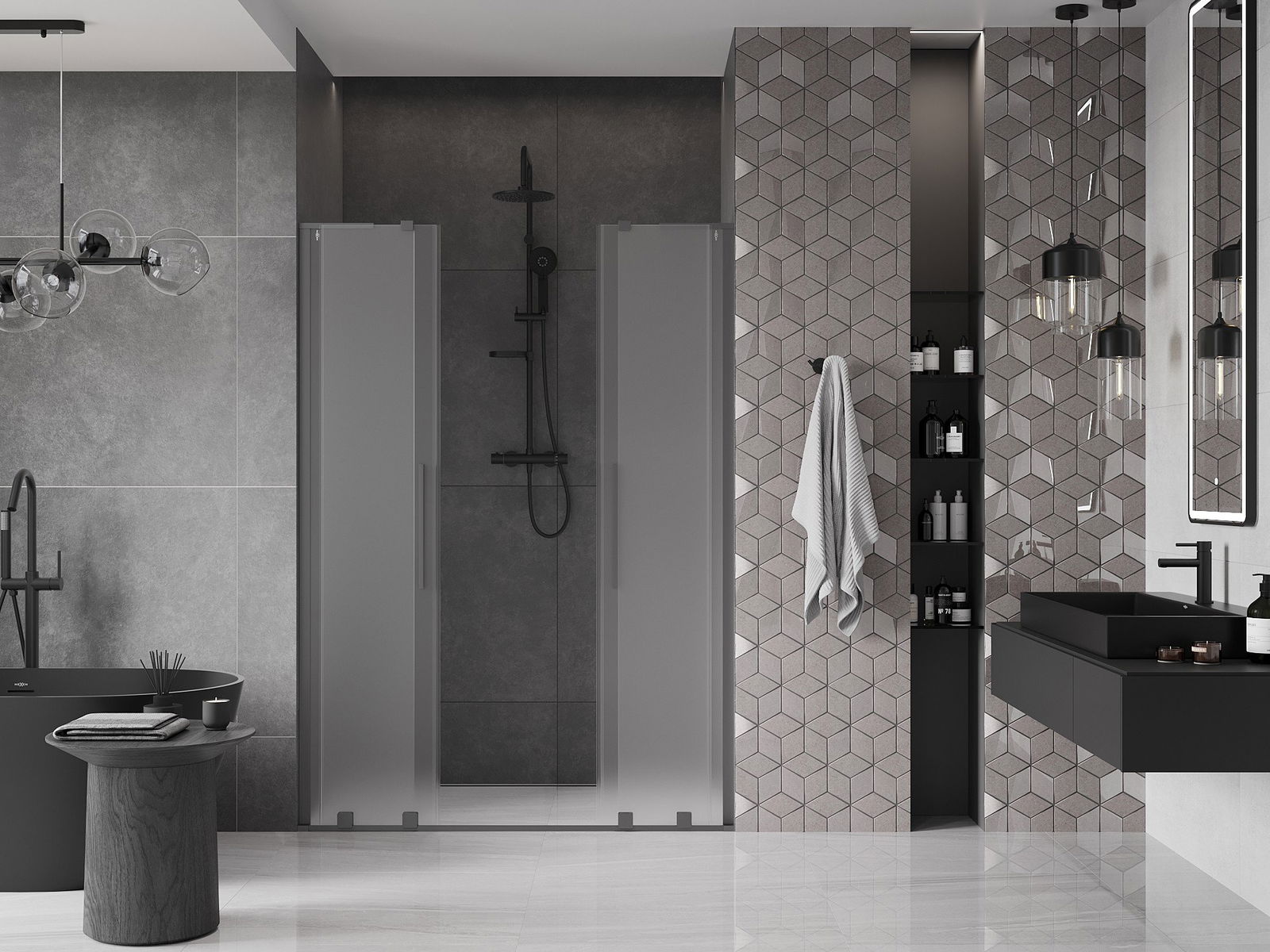 Mexen Velar L Duo sliding shower doors 140 cm, frost, gun metal - 871-140-003-32-95