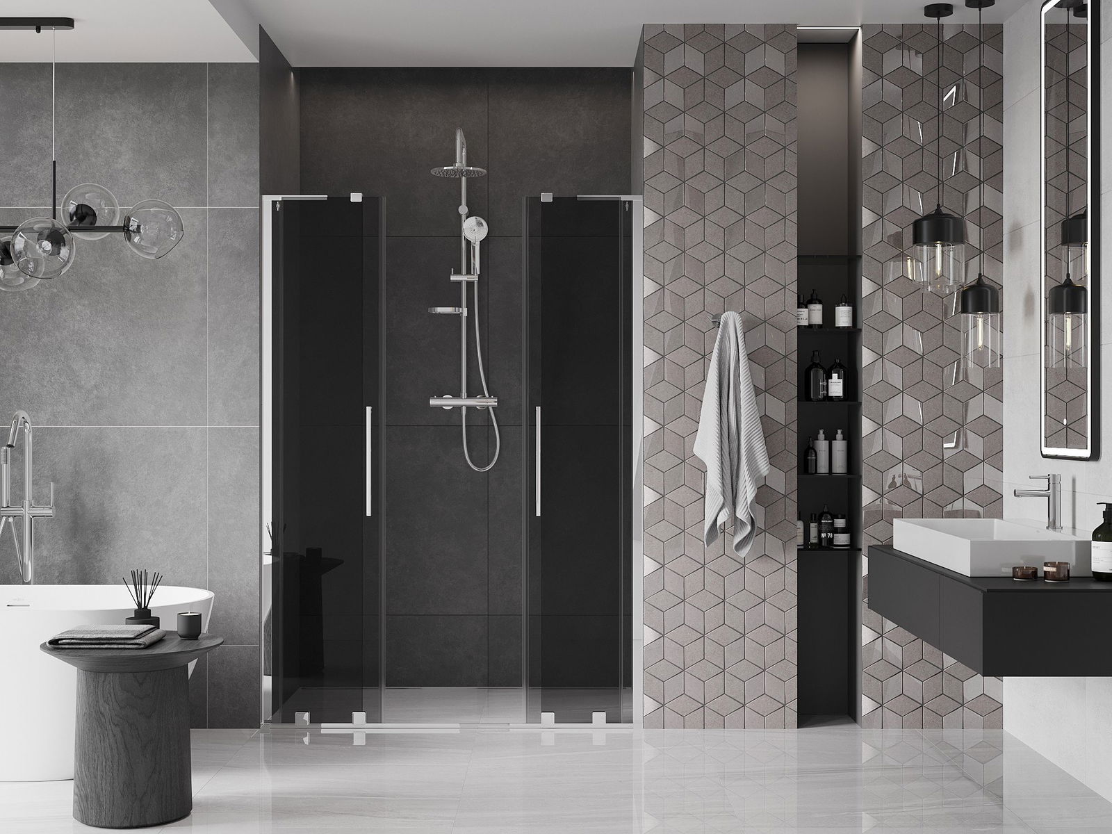 Thanks to the use of a universal mounting system, shower doors can be installed on the right or left side, depending on your needs. This allows you to easily design a shower tailored to the bathroom space.