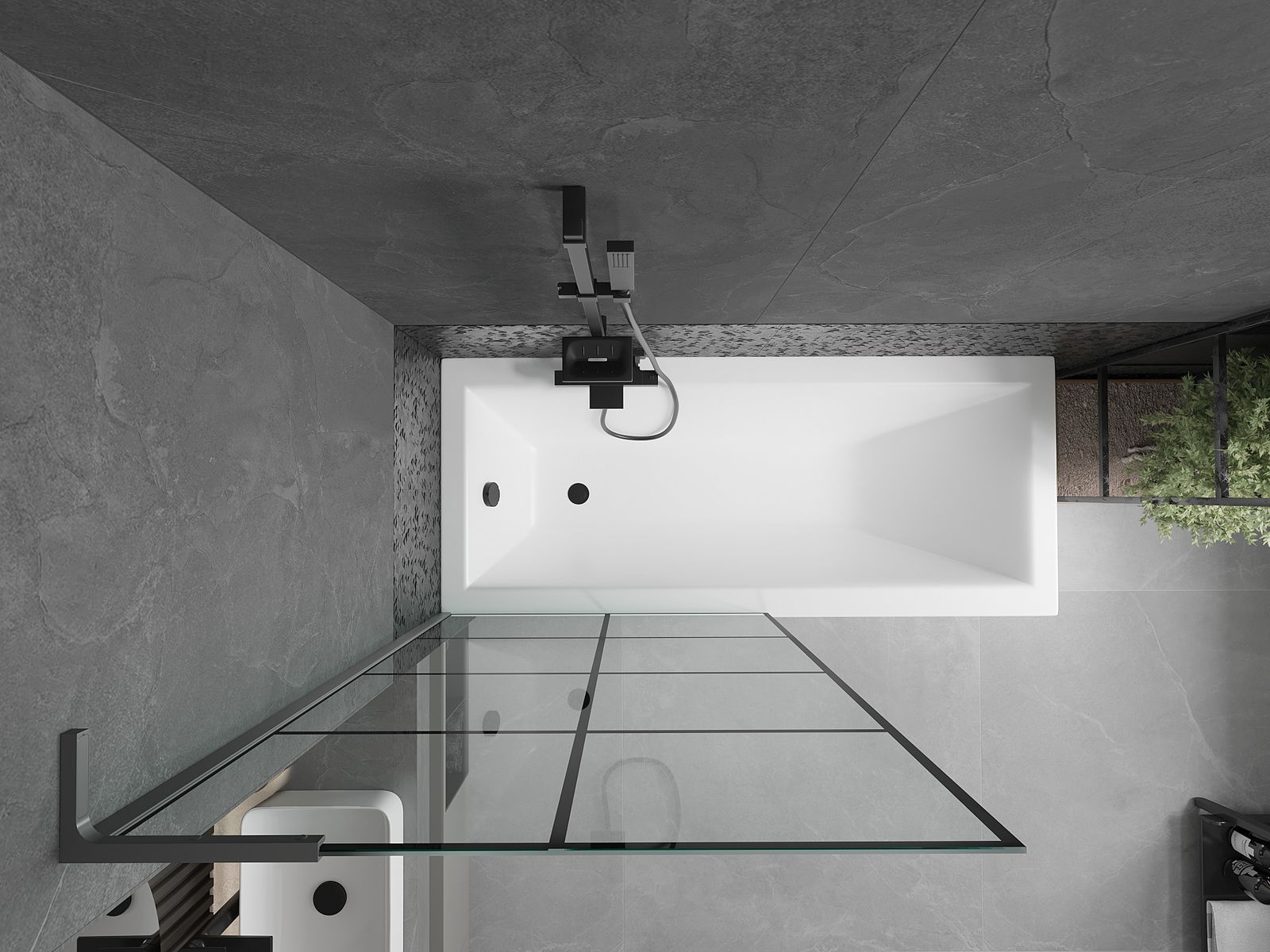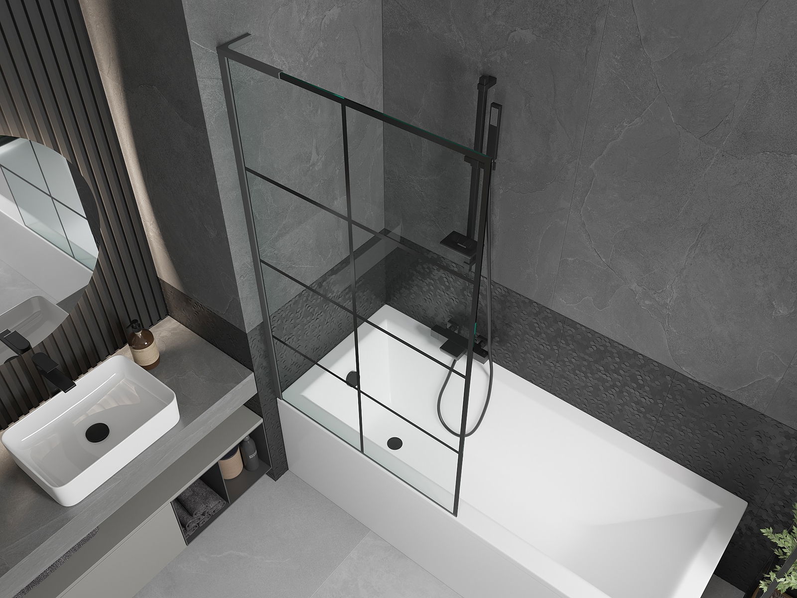 Mexen Next L 1-wing Bath Screen 90 x 150 cm, black grid, gun metal - 895-090-000-03-77-95