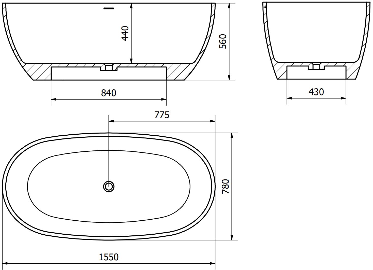 Mexen Torino freestanding bathtub made of conglomerate 155 x 78 cm, white matt - 57271557800