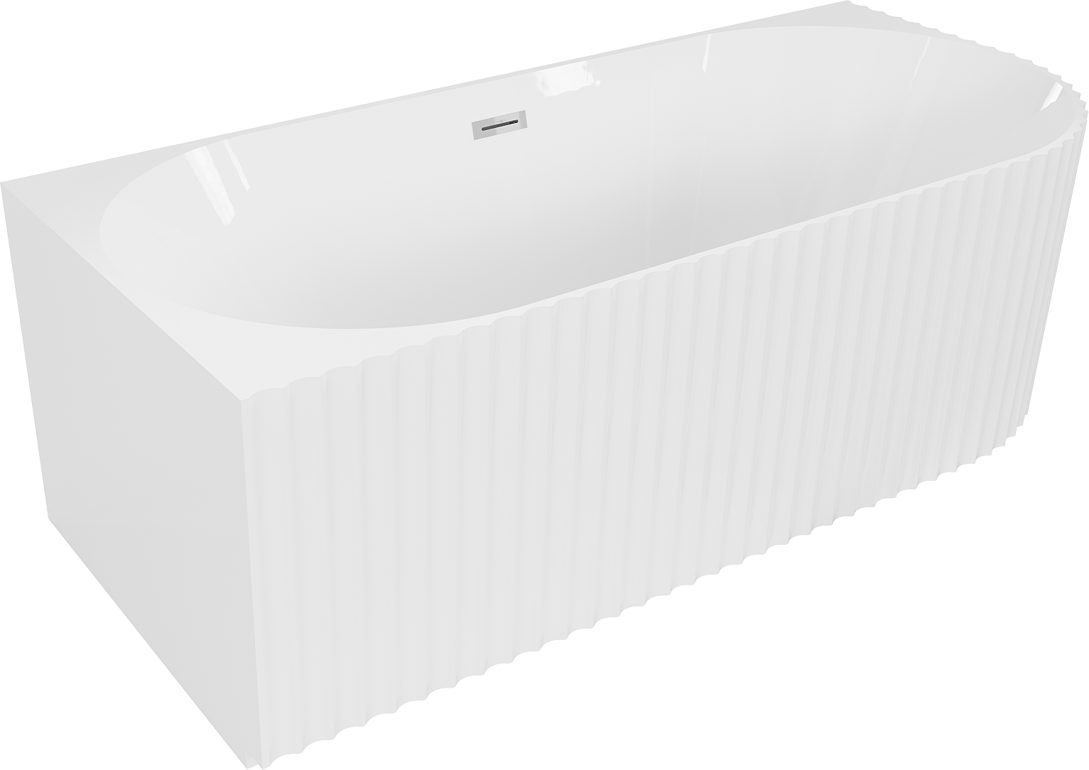Mexen Gia free-standing corner ribbed left bathtub 150 x 75 cm, white gloss, chrome overflow - 52701507500L-01