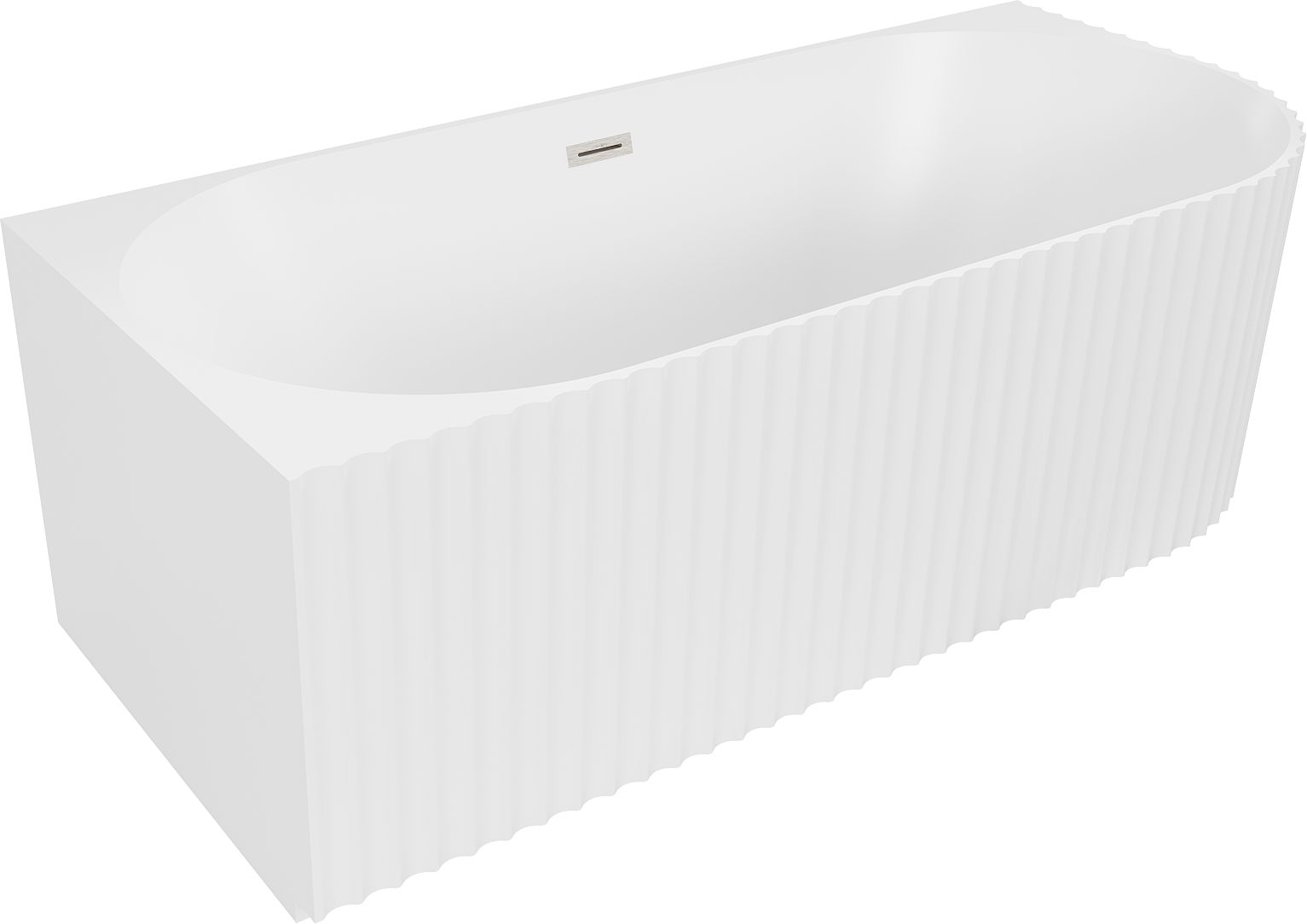 Mexen Gia freestanding corner grooved bathtub left 170 x 80 cm, white matte, brushed nickel overflow - 52701708001L-97
