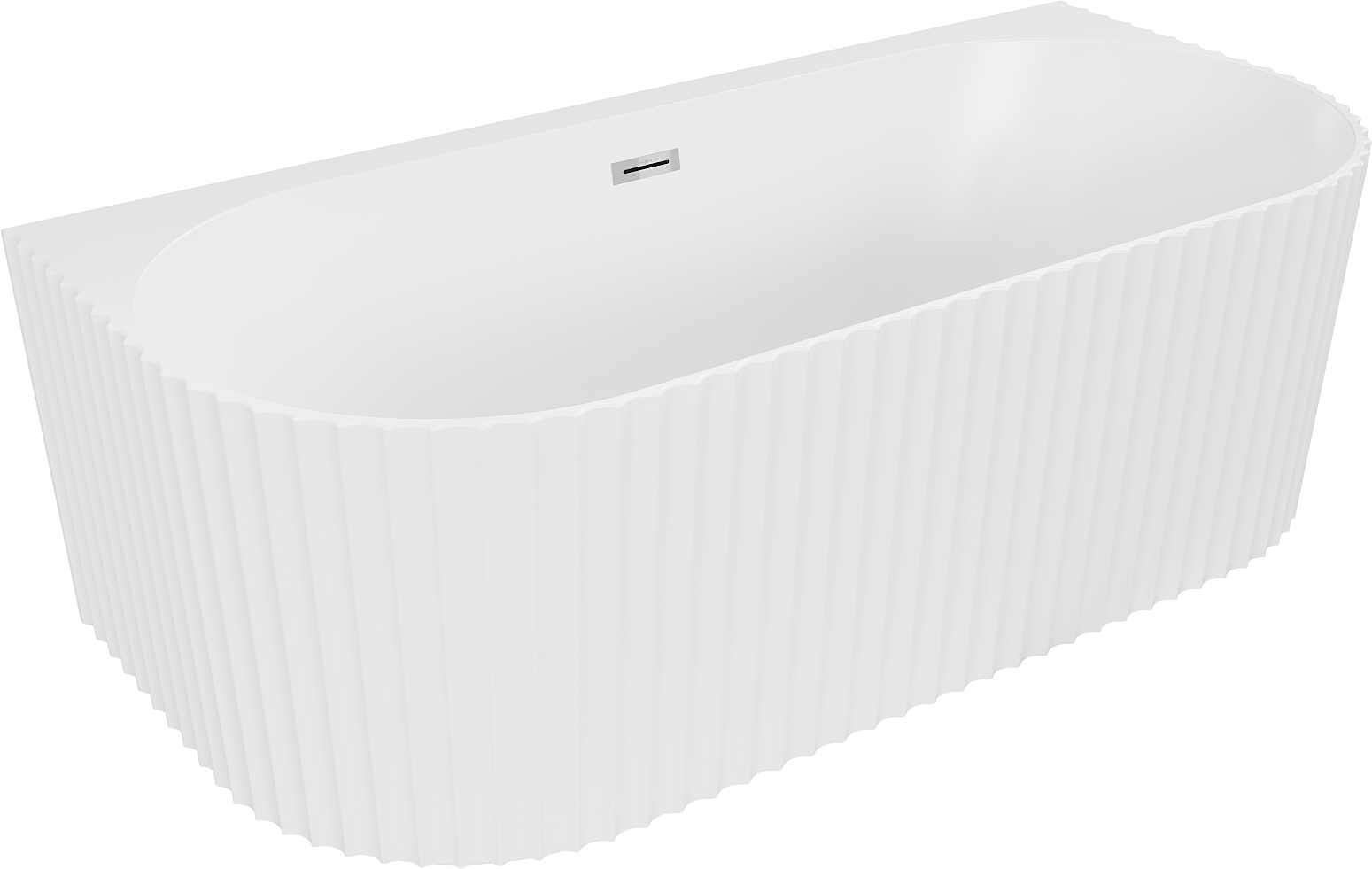Mexen Sella 170 x 80 cm Freestanding Wall-Adjacent Ribbed Bath, Matte White, Chrome Overflow - 52711708001-01