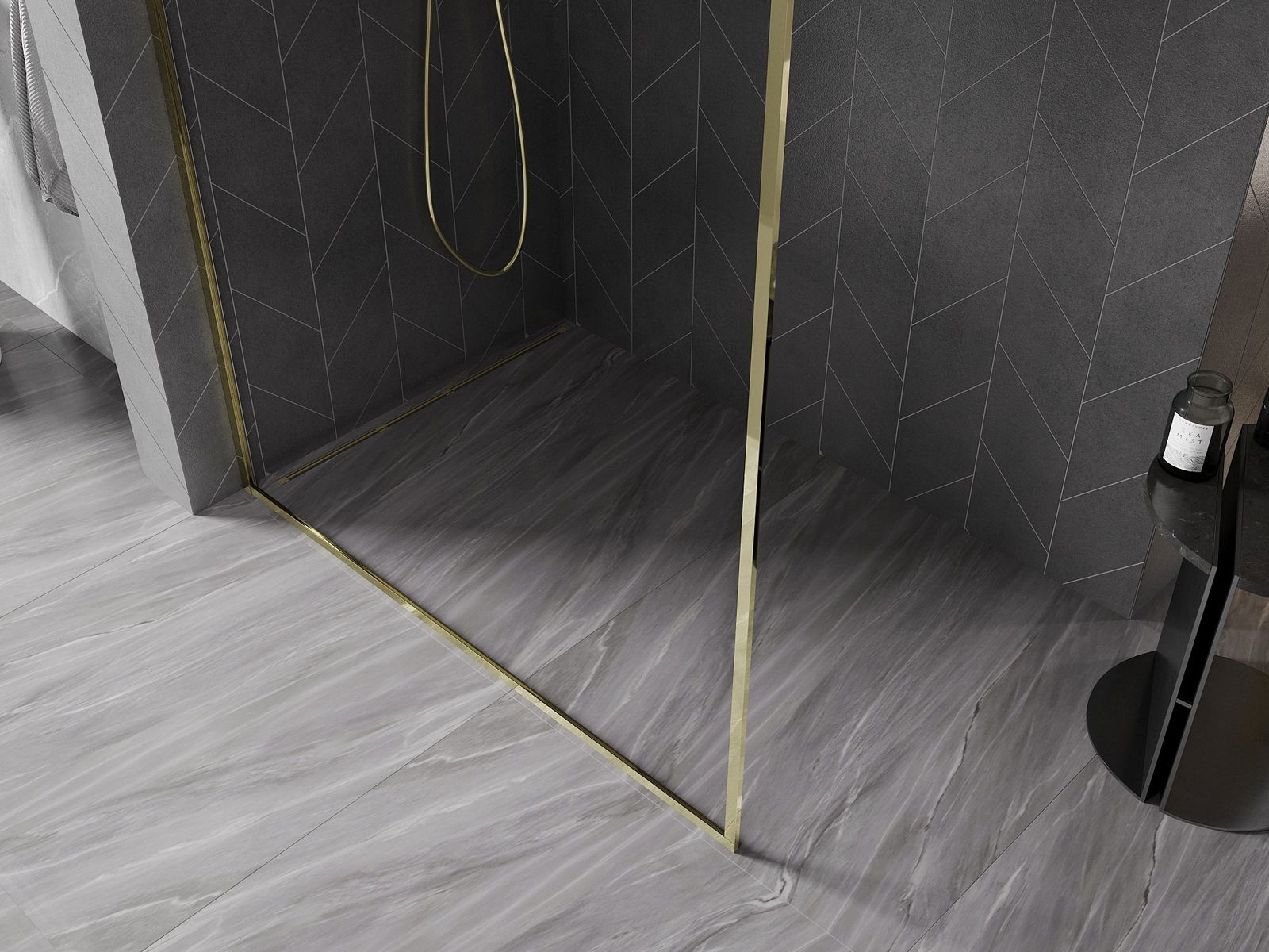 Mexen Kioto-F Walk-in Shower Wall with Frame 120 x 202 cm, Transparent 8 mm, Gold - 800-120-104-50-00