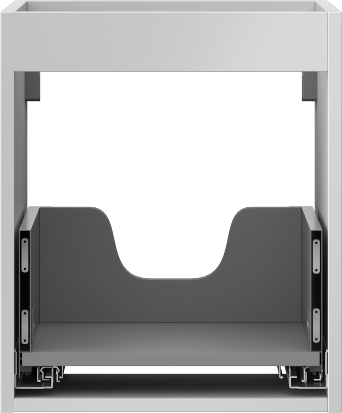 The cutout in the drawer is designed in such a way as to accommodate the siphon, which is essential in sink installations. This allows the furniture to be fully functional without having to give up drawer space for the installation.