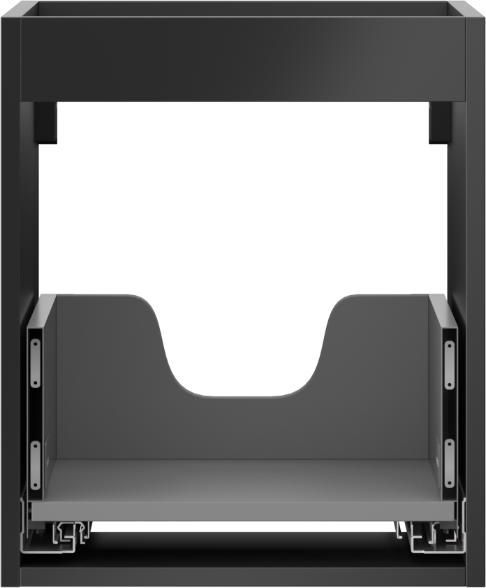 The cutout in the drawer is designed in such a way as to accommodate the siphon, which is essential in sink installations. This allows the furniture to be fully functional without having to give up drawer space for the installation.