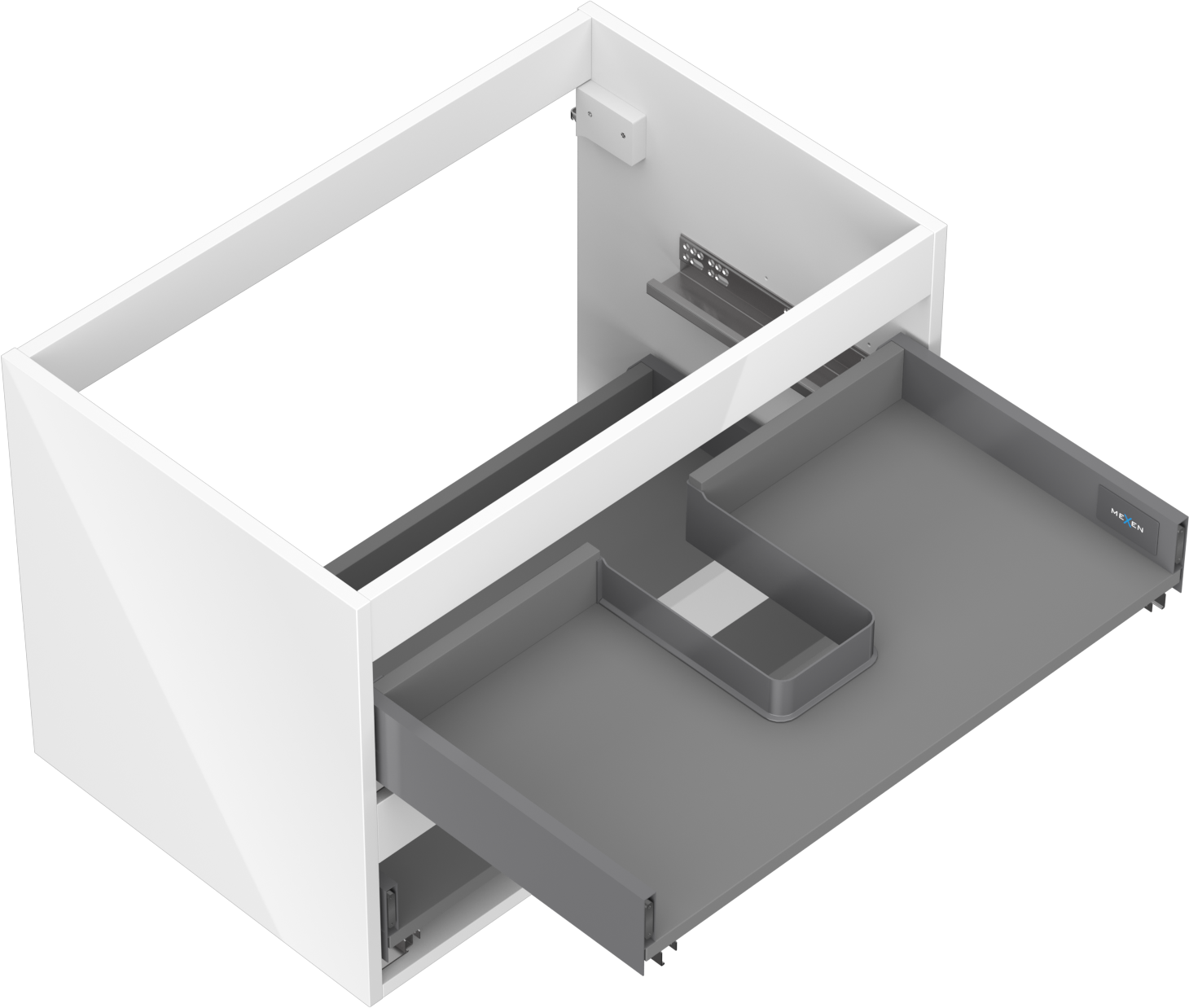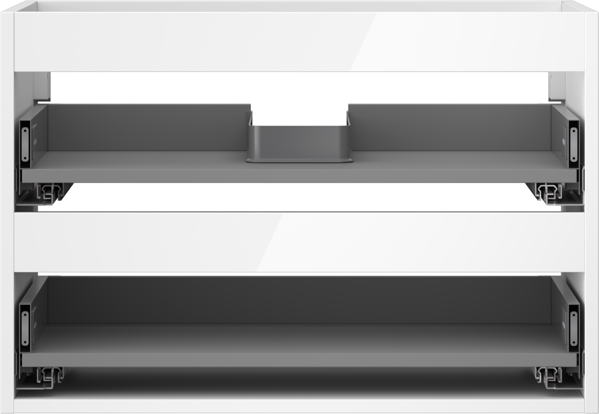 The cutout in the drawer is designed in such a way as to accommodate the siphon, which is essential in sink installations. This allows the furniture to be fully functional without having to give up drawer space for the installation.