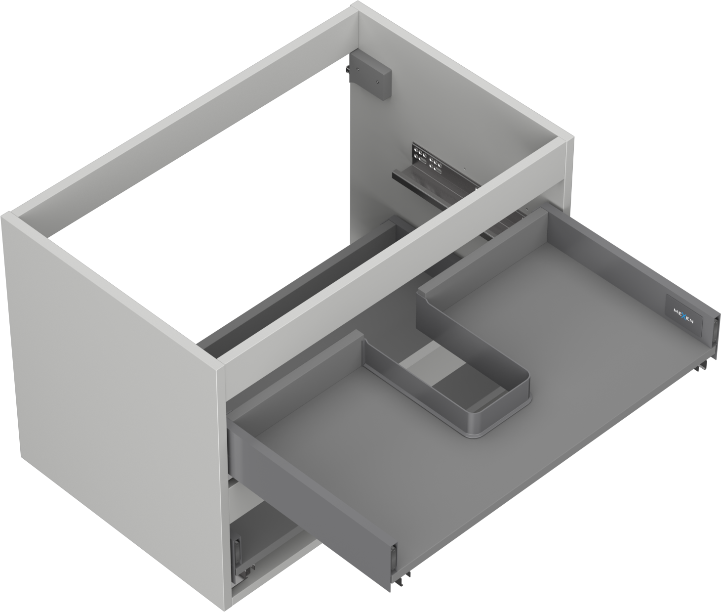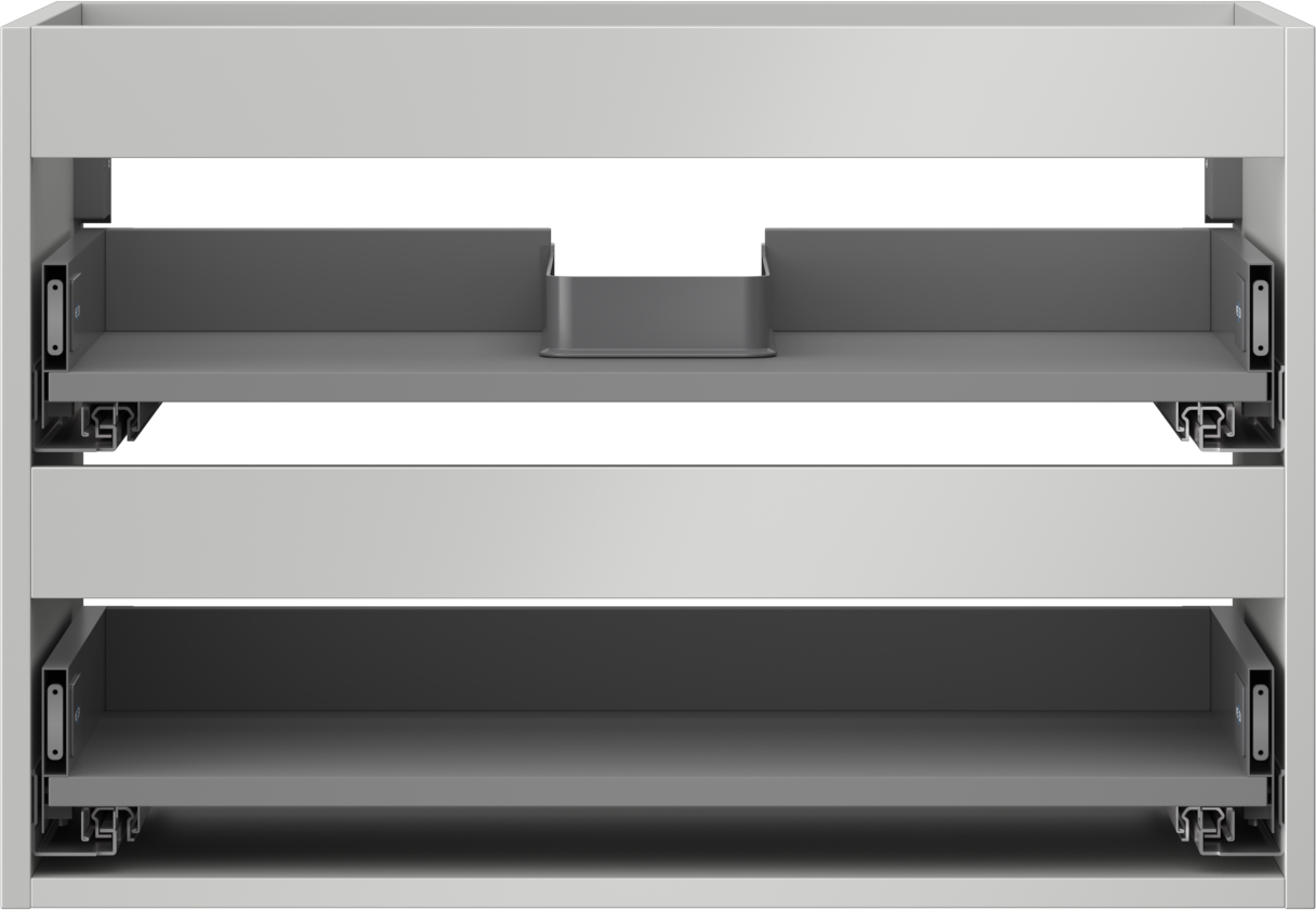 The cutout in the drawer is designed in such a way as to accommodate the siphon, which is essential in sink installations. This allows the furniture to be fully functional without having to give up drawer space for the installation.