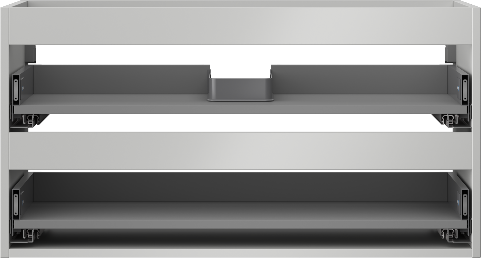 The cutout in the drawer is designed in such a way as to accommodate the siphon, which is essential in sink installations. This allows the furniture to be fully functional without having to give up drawer space for the installation.