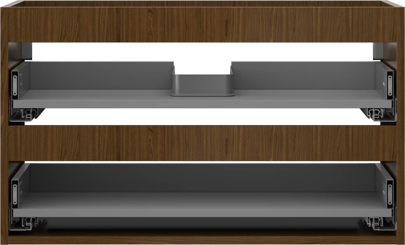 The cutout in the drawer is designed in such a way as to accommodate the siphon, which is essential in sink installations. This allows the furniture to be fully functional without having to give up drawer space for the installation.