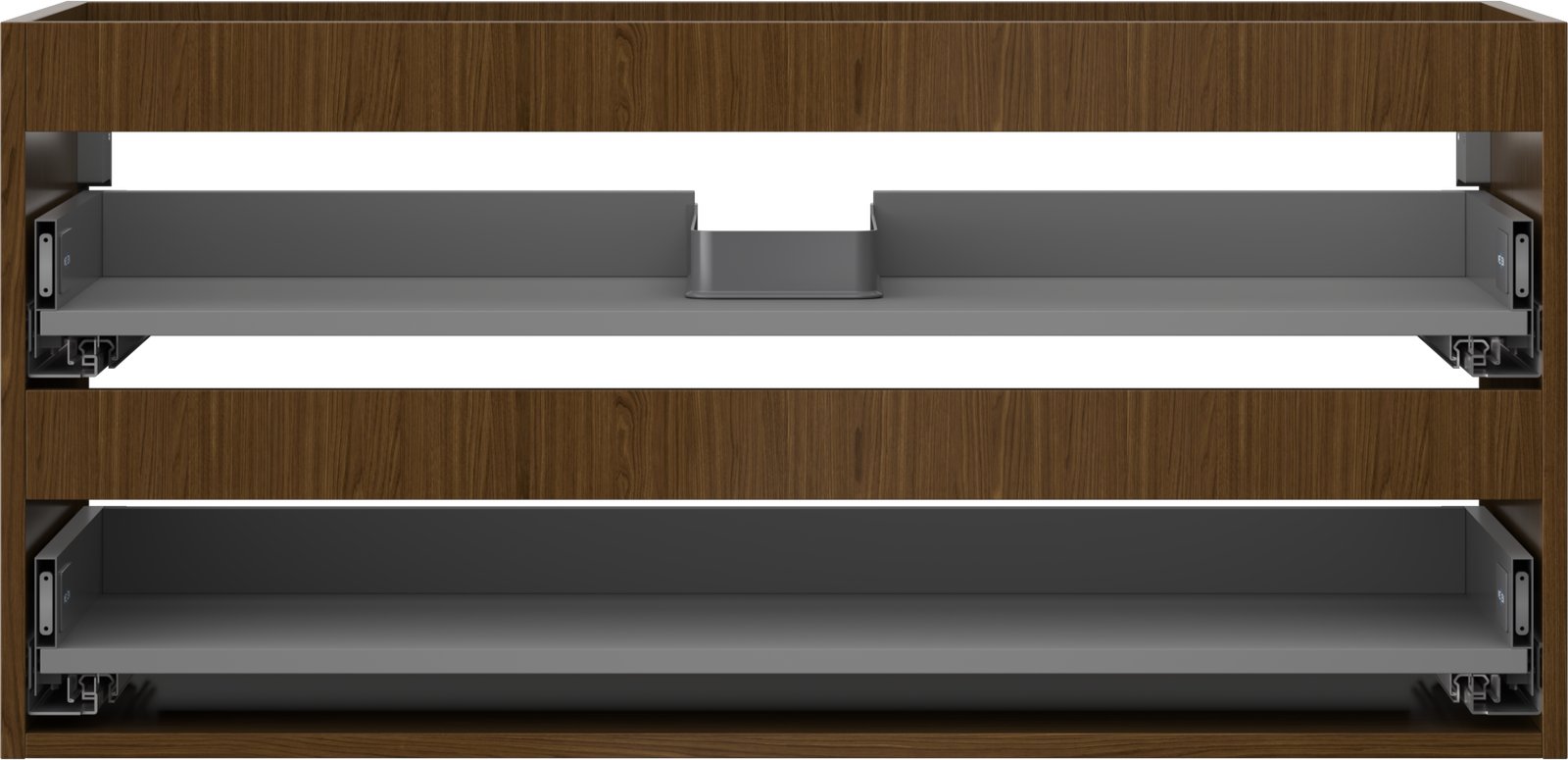 The cutout in the drawer is designed in such a way as to accommodate the siphon, which is essential in sink installations. This allows the furniture to be fully functional without having to give up drawer space for the installation.