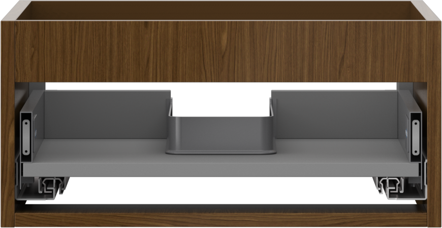 The cutout in the drawer is designed in such a way as to accommodate the siphon, which is essential in sink installations. This allows the furniture to be fully functional without having to give up drawer space for the installation.